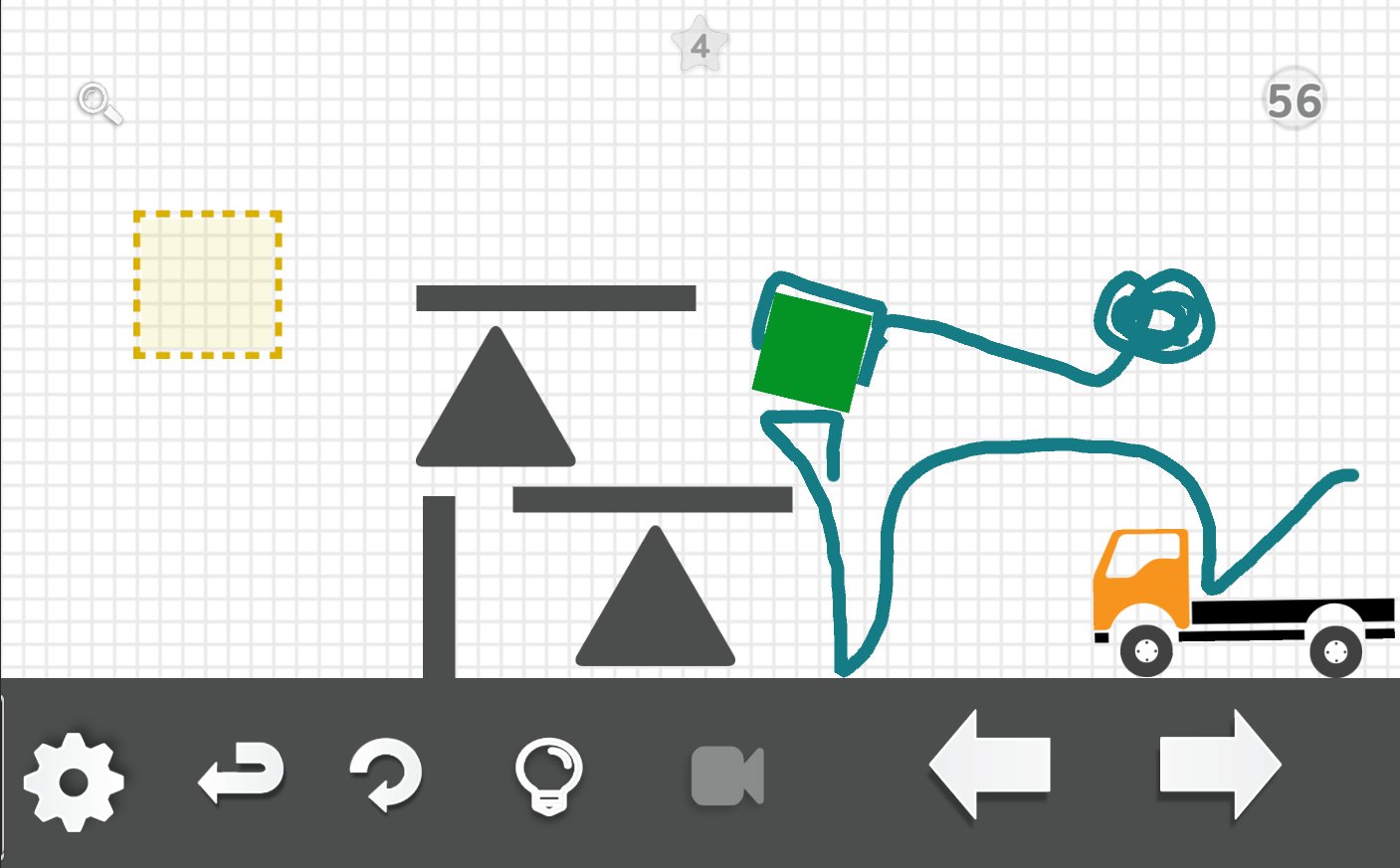 Brain it on the truck! – an exciting puzzle game for Android where your main task will be to move the green square to the yellow area. The goal of this game at first glance seems very simple, but the difficulty lies in the fact that you have to work hard with all my imagination to find the right solution. Draw with your finger the different shapes, lines and objects which will interact with other items and turn into a physical object. In this game you will find the correct decision, they can be a great set. With each new level complexity of game will increase and you will be able to enlist the help of hints.