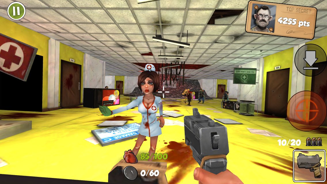 Rage Against The Zombies – a post apocalyptic action game on Android where you take up arms and destroy the zombies. The world of this game filled with zombies, and only you will be able to clear them from the streets of this small town. With the help of powerful weapons and his excellent shooting skills and destroy crowds of zombies who want to eat you. Lead continuous fire on the zombies and be careful not to shoot the nurse who will heal you from the wounds. The game features three unique worlds, each of which has 20 levels, pass them all and met with strong bosses. To fight zombies you will have various weapons which you can use at any time. Like exciting missions in this game in front of him and erect barricades to protect themselves from enemies.