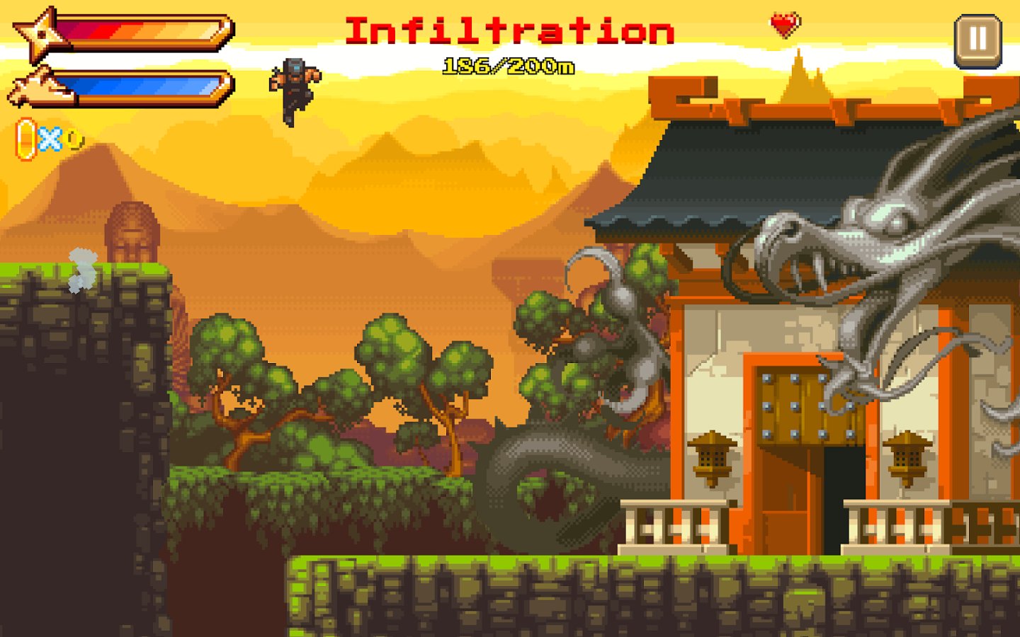 it is not difficult to guess from the name the main character of the game was the ninja, the Game mechanics are simple and clear jump, run, throw at your enemies of various stars, collect coins and develop your skills. The creators of the game tried to diversify the gameplay, having several modes. Classic missions, an endless mode and complete the tests required for obtaining the title of ninja. And five secret missions.