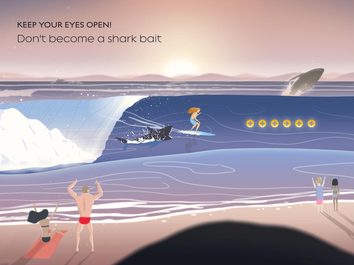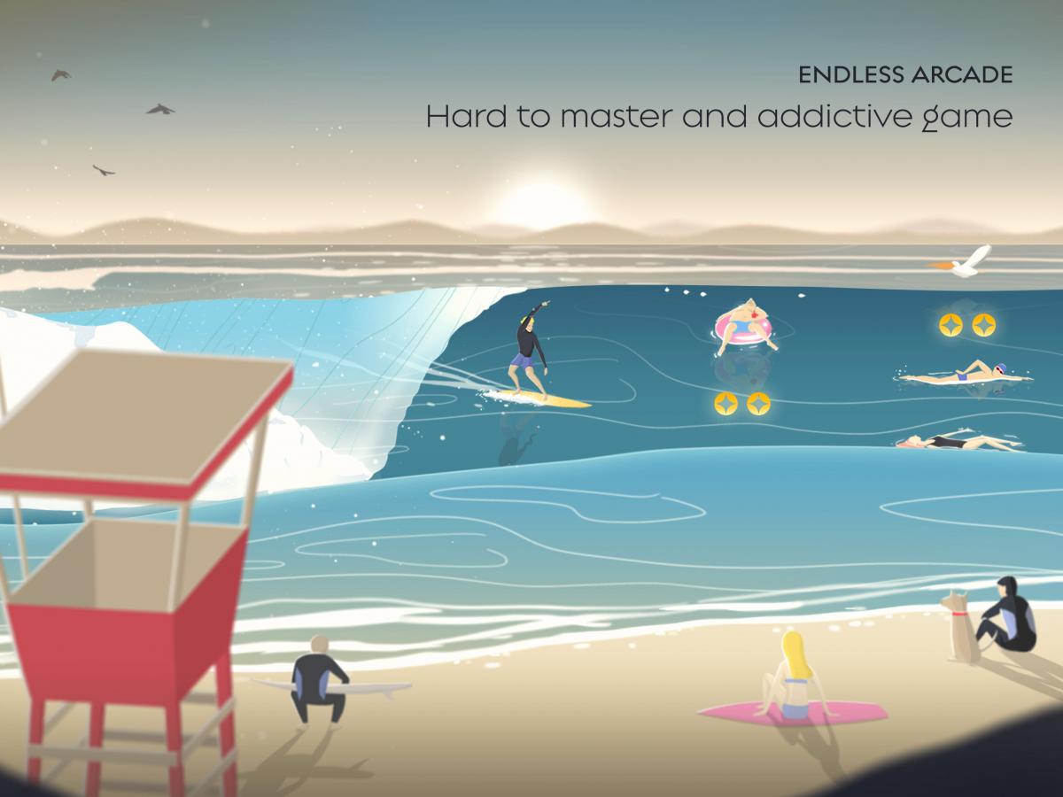 Go Surf the infinite wave is considered to be one of the best new in more than 75 countries. Great bright arcade game with interesting levels panache is designed in minimalist style. The ocean always beckons surfers with its waves and vast expanses. Complete freedom of action, adrenaline and getting unreal buzz gives surfboard and waves. Find out how long you will be able is located on the crest of a wave. Break your records and set new, compete with friends and having fun. Various bonuses will help you to pass dangerous areas.