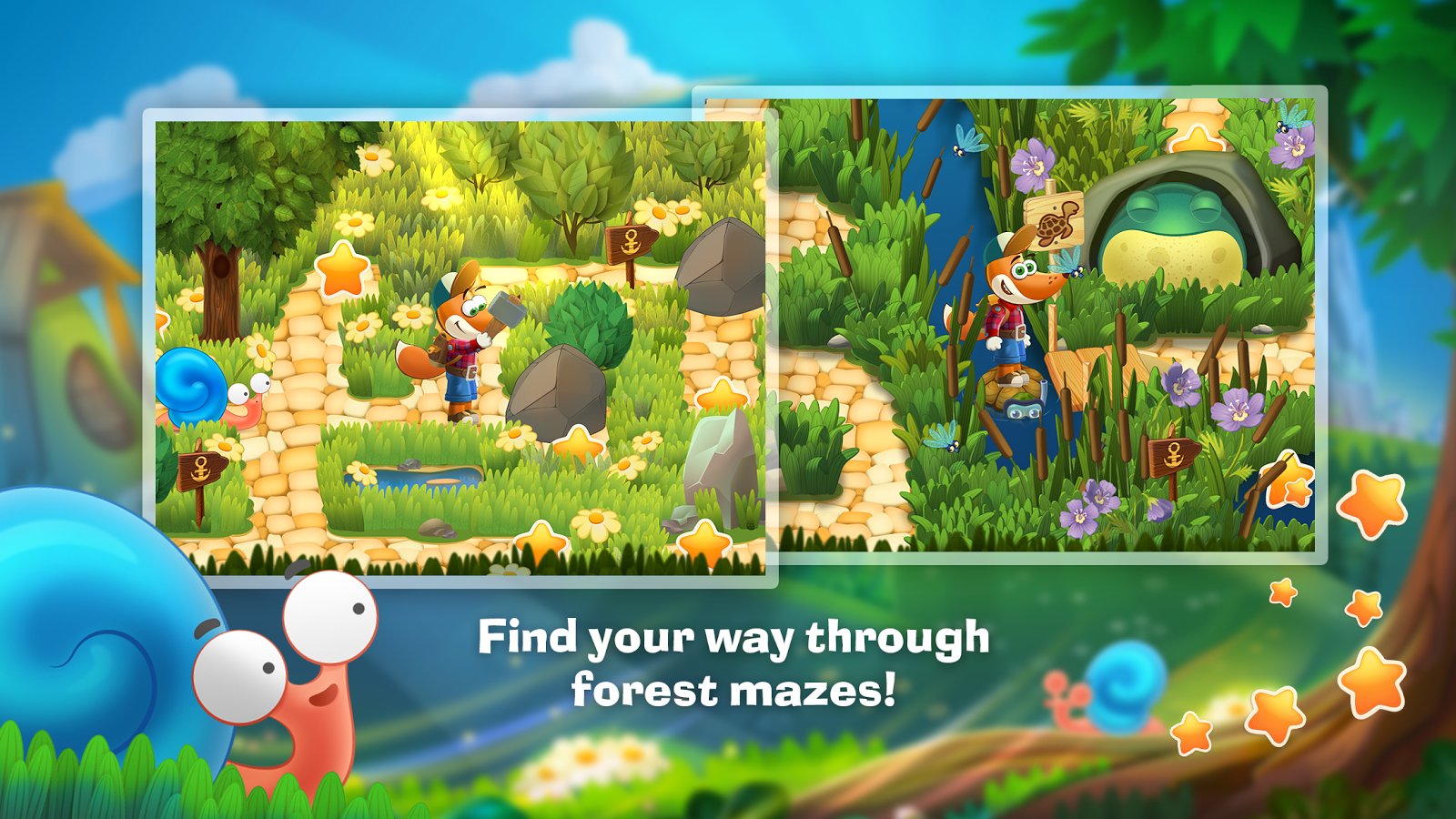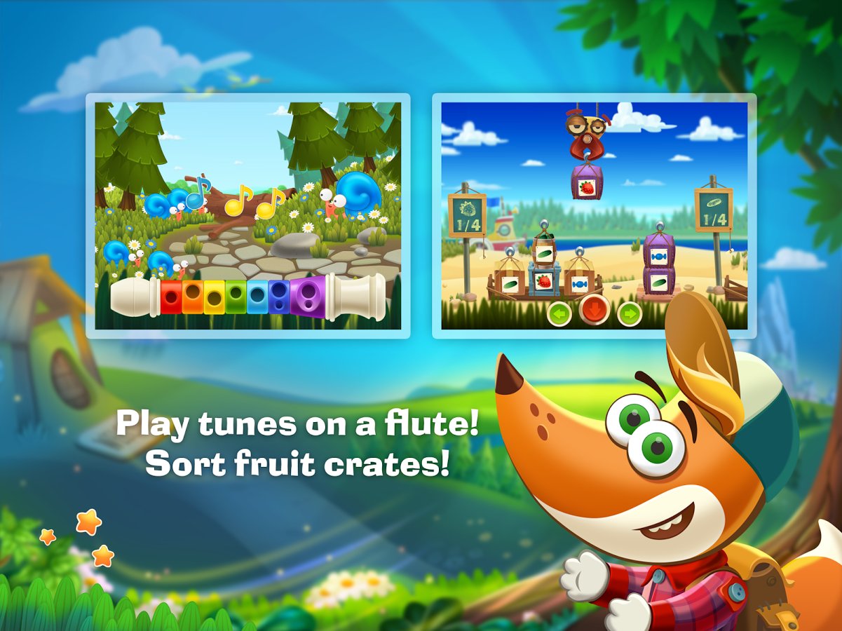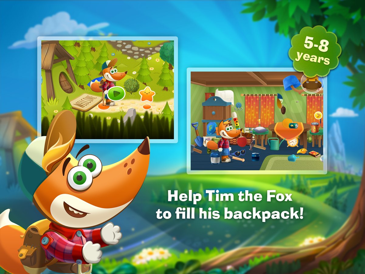 Tim the Fox – Travel – game for children on Android, which will develop memory, logic, attention and arithmetic skills. In this game the child will need to help the Fox to Tim to find a fallen star. One day our pup was laying and looked at the starry sky, seeing as the fell a great star he decided to go look for her. Travel with Tim on numerous locations of the game and help him in all difficulties. Navigate through the fairy forest, sandy beach, Sunny meadow, and other locations. Help to all my friends, met you on the road to perform various tasks. In this game your child will develop skills such as: attention, logical thinking, finding the right items, develop memory, coordination of movement and to stimulate perseverance.