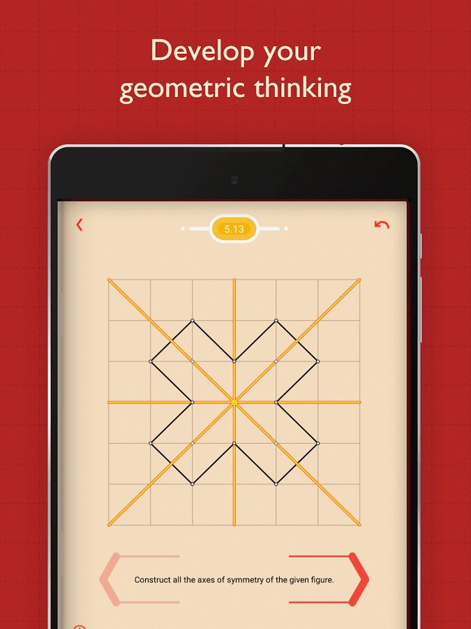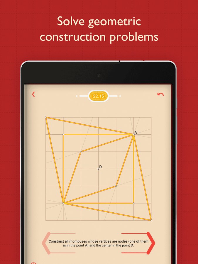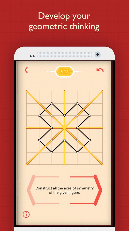 Pythagorea – an exciting puzzle game for Android where you have to recall your knowledge of geometry. In this game you will find yourself on the field lined in the box where your task will be to construct different geometric figures and thereby to perform the job. Solve various tasks proposed by the game and use the Glossary to refresh your memory. Match dots and straight lines, and draw circles and ovals. With each new level complexity of game will increase and you will have a hard time to pass the level. The game will please you simple controls, over 250 levels and different jobs.