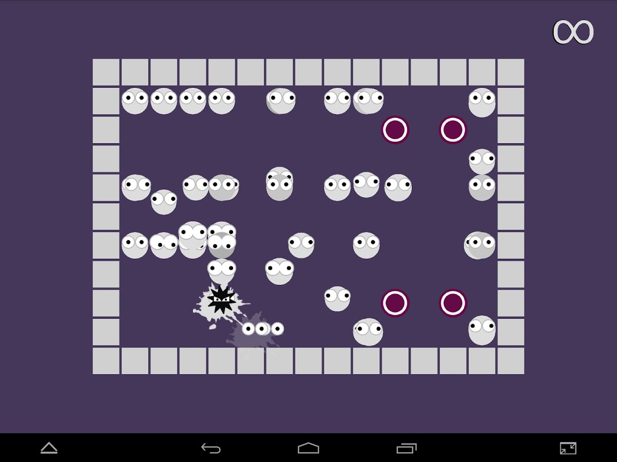 Cloner – a game on Android where you control a circular character which is able to reproduce. At first you will control one character but when he reached a certain point on the screen, you can clone your character. Manage all clones at the same time and avoid all the obstacles and barriers in his path, trying to get to the coveted point, while collecting together all of the clones. On your way will arise numerous traps, bridges, pits, bricks, buttons, doors, catapults and teleporters. The four sets of levels, each of which has its own function: