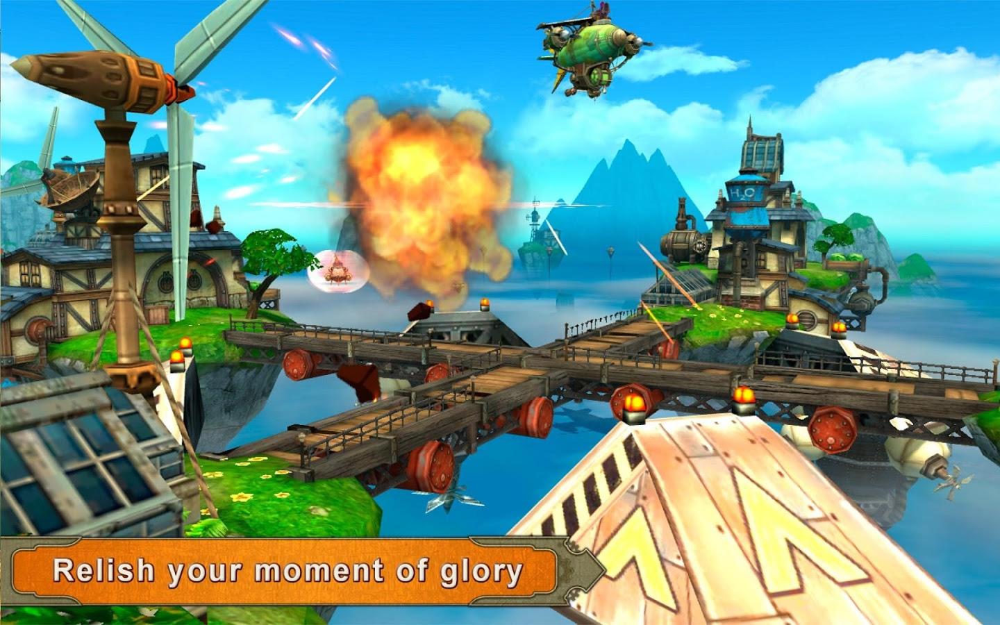 Sky to Fly: Battle Arena is a 3D multiplayer online shooter, which on the digital space a huge amount. This time, however, you don t have to rush with the machine in tight corridors shooting their own kind, the developers looked at the usual process from a different side. Game line develops into a fabulous Stepankova the world, you are given a choice of several classes of equipment, each sample of which can be developed and upgraded in several ways. When you are finished with the selection of a machine you go into battle, here, the surprise is, shoot, destroy, destroy, the main thing is to win. Separately worth noting the excellent graphics, which you have not yet seen on mobile platforms, and live animation will make the gameplay even more flavor.