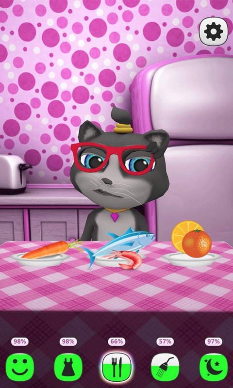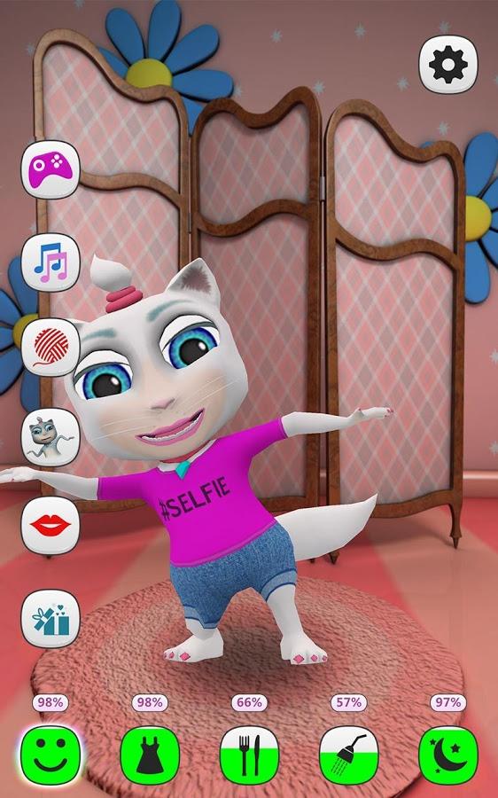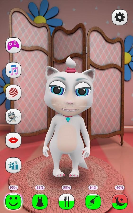 My Talking Kitty Cat – the game for Android, which is great for children. By installing this game to your Android phone or tablet, you will get a cute kitten that will play with you, to repeat your speech for its unique sweet voice and making you laugh with their actions. This game will give your child the best opportunity to have a pet. Care for a kitten just feed and water it, and don t forget to play with him in different games and to bathe after a long day. This game will also delight your child with the opportunity to play with her kitten in a mini-game and dress him in different costumes. Pick the best outfit of the day for your pet and show it to your friends.