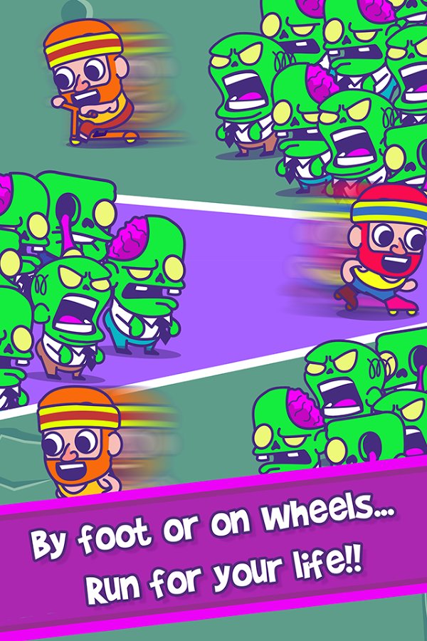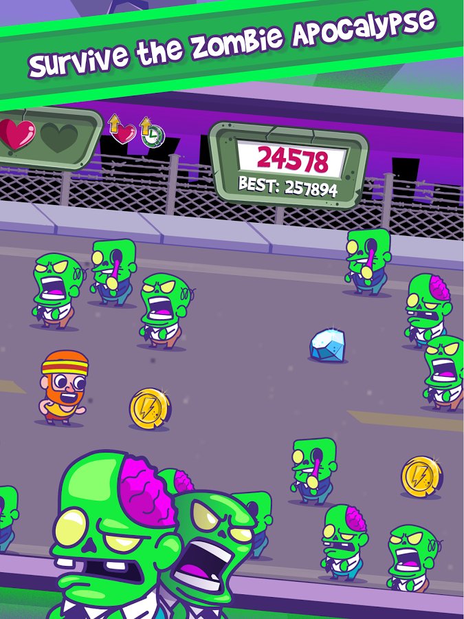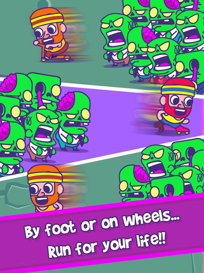 Zombie Chase - Runner Game – runner for Android, where you will find yourself in a post apocalyptic world where you help the brave hero to escape from the zombies. Control a running hero and help him to maneuver in the endless stream of zombies trying to escape as far as possible from them. The only possibility of the hero to avoid death it s running, because it had no weapons and ammunition. Run through numerous game levels and collect numerous bonuses and power-UPS, such as skateboards, roller skates and other adaptations for rapid movement. Don t let bloodthirsty zombies get to your character and face him. Collect points and get your hero a variety of costumes that will delight you with its diversity.