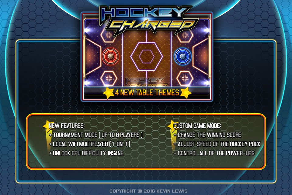 Charged Hockey - air hockey for Android devices, with great stylized graphics and vivid animation. In addition, the developers have implemented a set of various variants, including multiplayer and online battles.