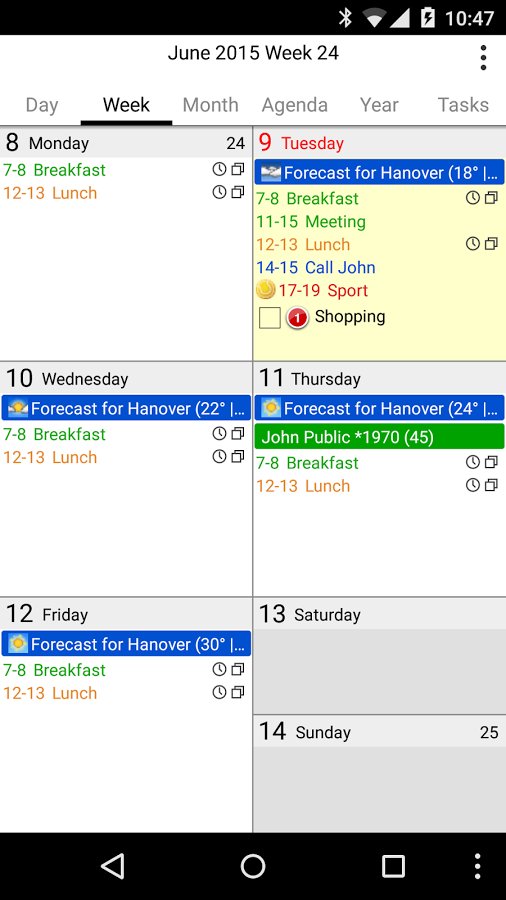 CalenGoo - Calendar and Tasks - Simple and intuitive application for managing your daily Affairs. Here you can leave notes, and record their deeds. Excellent calendar and multiple filters greatly simplify working with the application. You will be able to choose the color of the notes, depending on the importance, or simply to divide them into categories. You can also view all the notes at once, or choose a specific date on the calendar. Beautiful and simple design of this app please anyone.