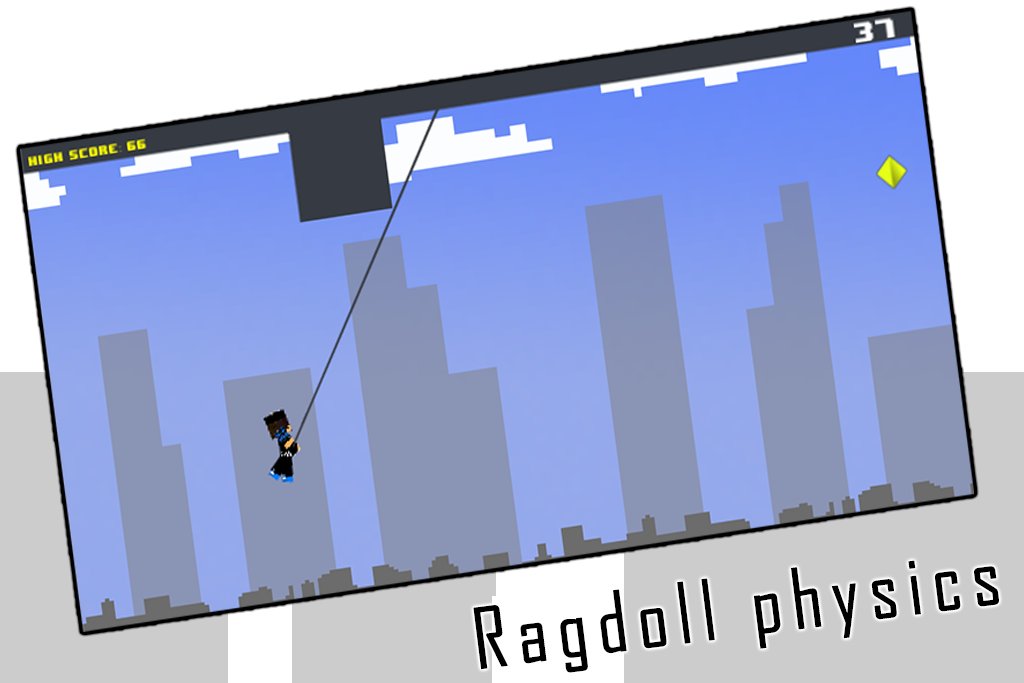 Pixel Rope Endless Rope Swing in order to play this game, you need to have a good mind and very good exposure. If you don t have, I do not recommend you even start. Unlike their counterparts, here the level is moving very quickly, and obstacles are placed close to each other, which is much complicates the problem, because your character is quite plump. But if you are seriously aiming to set a record, you need to be patient and thoroughly explore all the chips in this game.