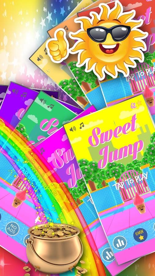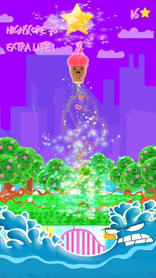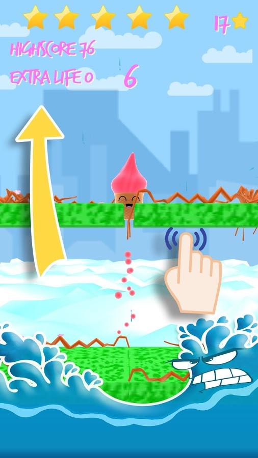 Sweet Jump – a game on Android where you will help a variety of sweets to go from the coming flood. The coming storm threatens all the world to immerse him under the water and only ice cream, donut and other sweets decided to retire from the flow of water. Jump as high as possible through the colorful levels and avoid flooding. Show in practice the speed of your fingers and good reaction, without stopping making numerous jumps. The water level will increase and you will have pretty try not to drown. By the way don t forget to collect gold stars and thus get access to new heroes of the game. Game players will appreciate the excellent bright graphics, numerous characters and simple controls.