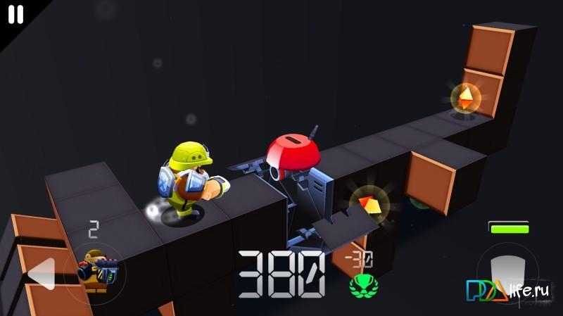 Box Runner is a pretty original three-dimensional platformer with elements of Rahner, made in an isometric view. Overall, the gameplay is not new, driving a hero your task is to move around the track while jumping over the blocks, dodging enemy robots and collecting all sorts of crystals. However, there is one feature which radically changes the usual gameplay, the track appears as you move through it, so that way you will have to wait a lot of surprises.