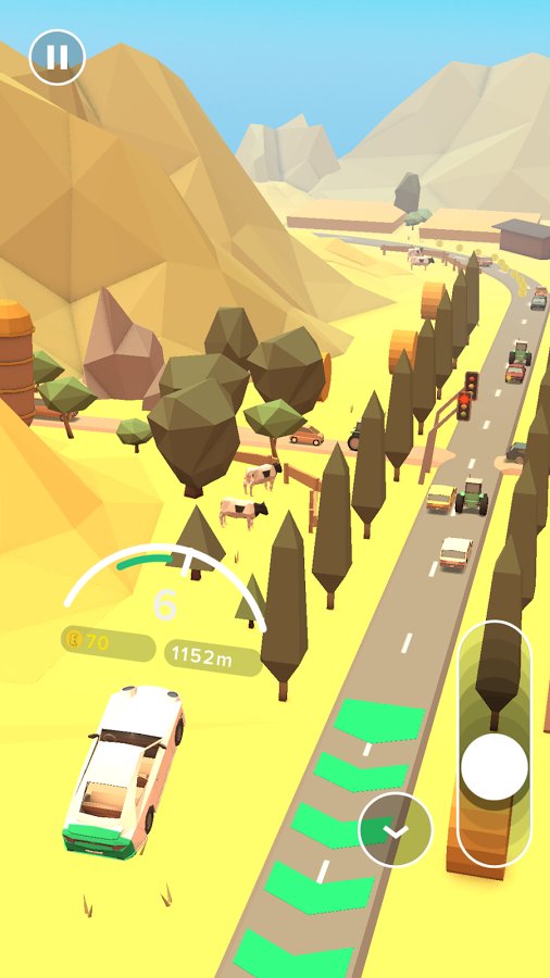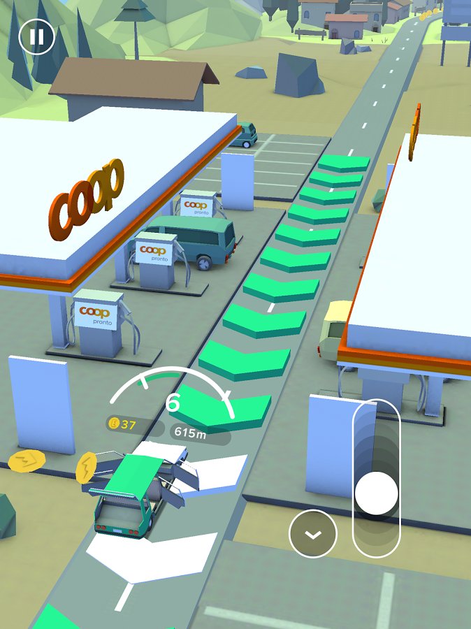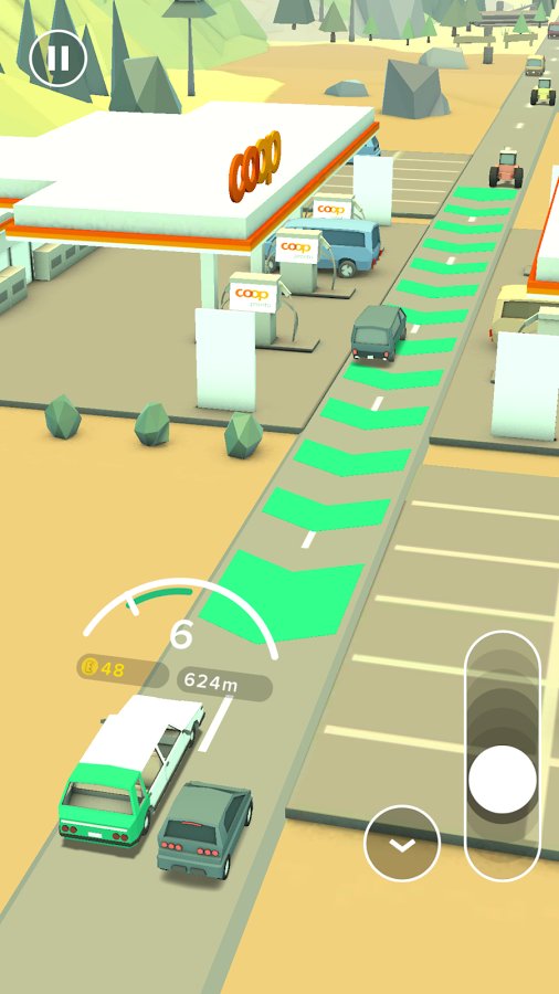 EcoDriver - a new milestone in the development of the genre of the runner. Overall game mechanics EcoDriver performed by the classical scheme, your task is driving a car to try to overcome the greatest possible distance while collecting coins and putting various records. But the developers have implemented some new elements, randomly generated world will give each game session novelty. But it s not the most important thing, as you might guess from the name of the game in front of us environmental runner, so what do you in addition need to keep the fuel consumption within given limits, thus keeping the balance between speed and cost of gasoline, and as a result of contamination of the surrounding environment. In terms of visual execution for the game as well no complaints.
