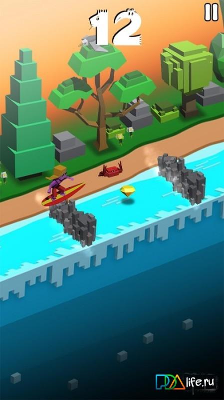 Rolling Rapids - a vivid example of a modified Android, more game mechanics made in the usual style, driving a hero your task is to overcome the greatest possible distance while avoiding obstacles and collecting prizes. Changes have affected the look of the game, the isometric position of the camera and the picture presented as if in the context of Rolling Rapids gives quite unique look.
