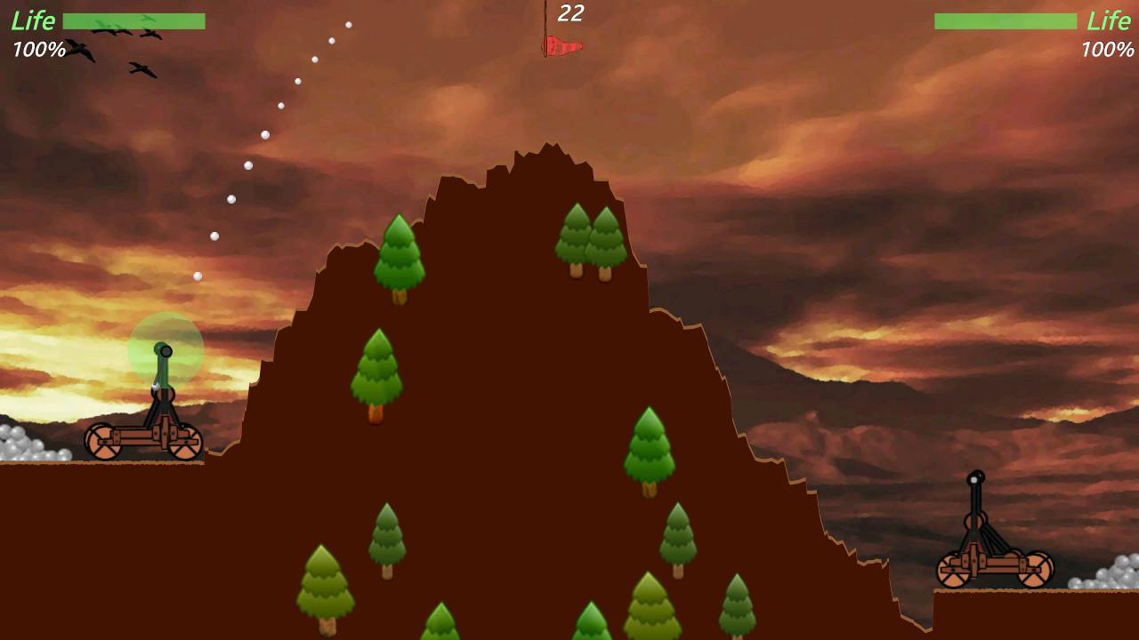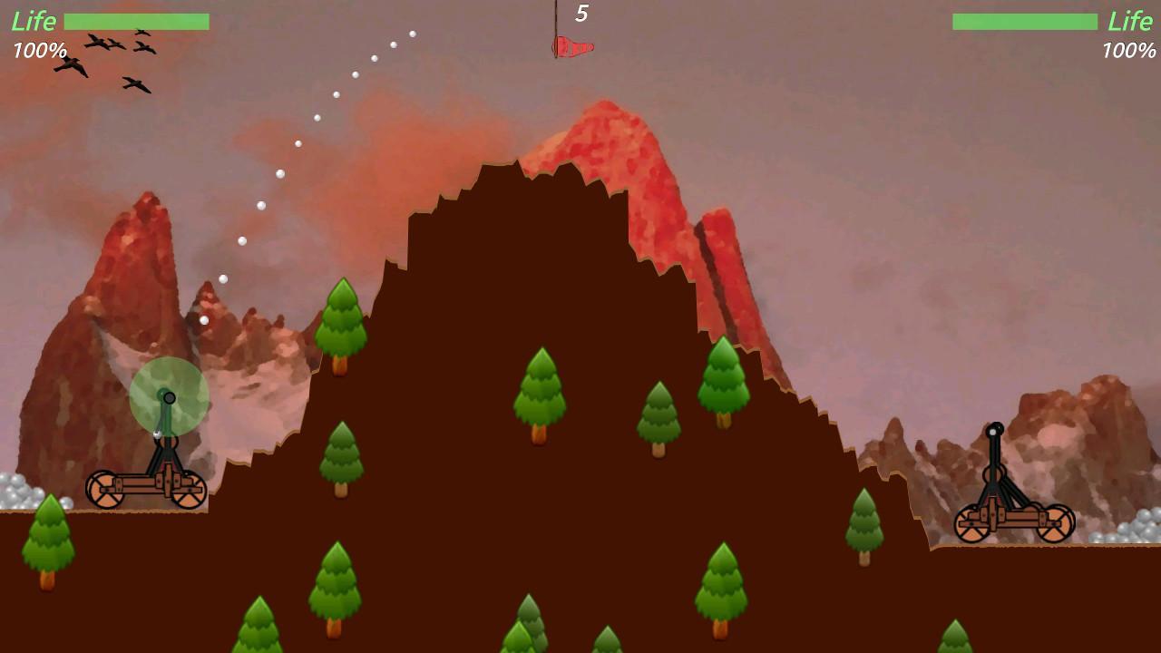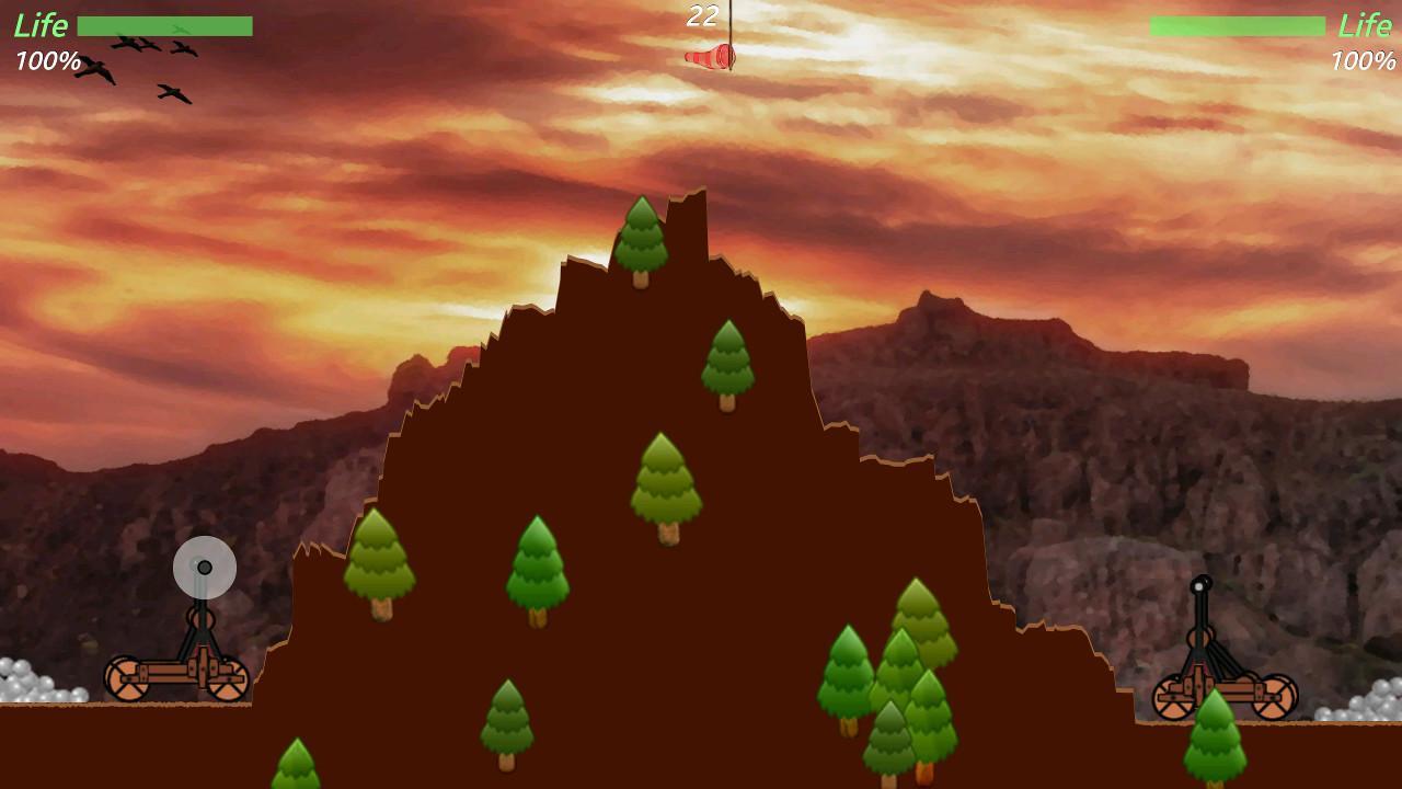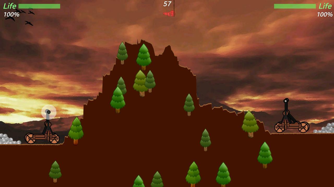 Catapult – a game for Android, which will take you back in times where everything is solved by brute force. In this game you take your part in the bloody war where the main weapon was the catapult. Place your weapons near a small rock and shoot, hoping the flight path of the projectile to inflict maximum damage to the enemy. Instead of shells you will have a primitive bombs that you have to flip over the rock and hit the enemy with an accurate shot. This game has two game modes: against the computer or play with your friend on one device. Choose a suitable difficulty level and keep in mind when throwing the power of the wind.