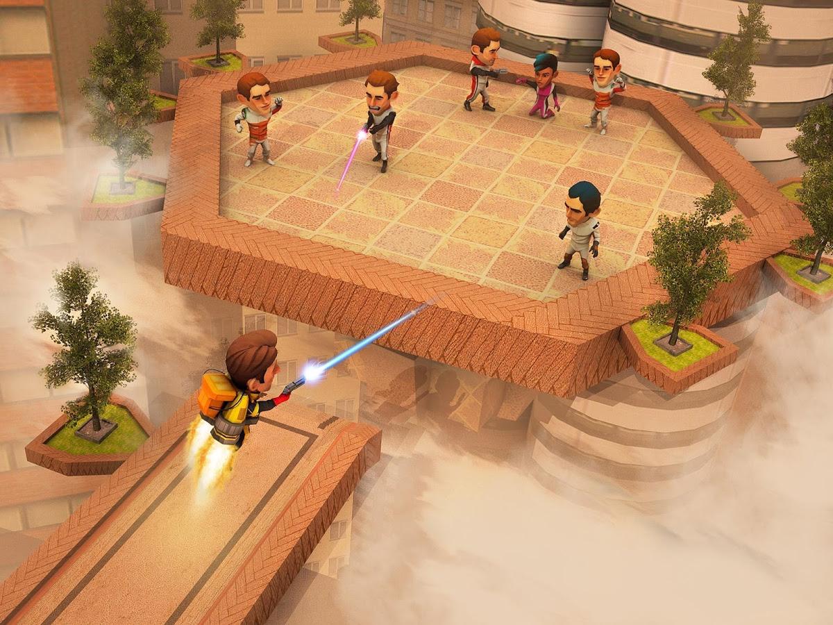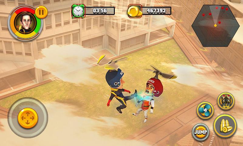 Flying Hero game 3D - an excellent action arcade game with three dimensional graphics. The game takes place around a young pair of lovers who find themselves in a difficult situation, the girl was kidnapped by a gang controlling the city. It is worth noting that the scene is not quite normal, it s floating in the clouds futuristic city. In turn, our main character has a set of quite useful for these conditions, devices, this jet pack that allows to move in all planes and of course the most modern laser capable of incinerating the enemy.