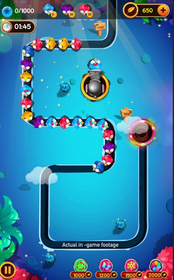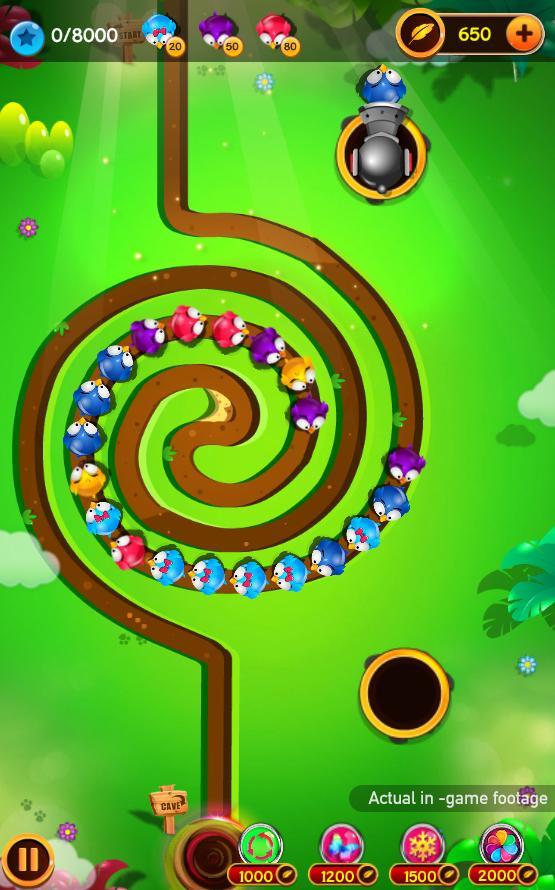 Bird Blast - Marble Legend is an exciting game for Android made in the likeness of the famous game Zuma. In this game your task is to shoot the chain of the birds and to do so to collect three and more same colored birds in a row. Blast the chain with the birds and do not let them get to the exit, overcoming a winding path. Match the birds and get maximum points, using combo attacks. As soon as you blow a chain of birds, the movement of the whole chain to slow down or be held back. Use various bonuses and power-UPS, exploding bombs and a chain of birds or freezing it.