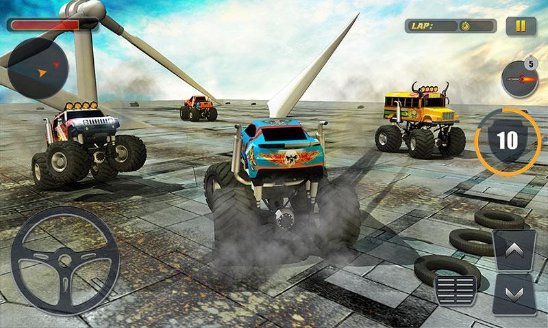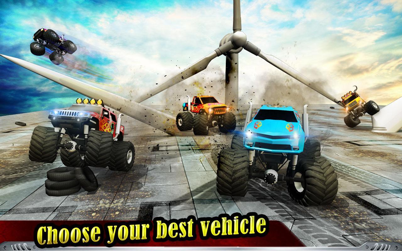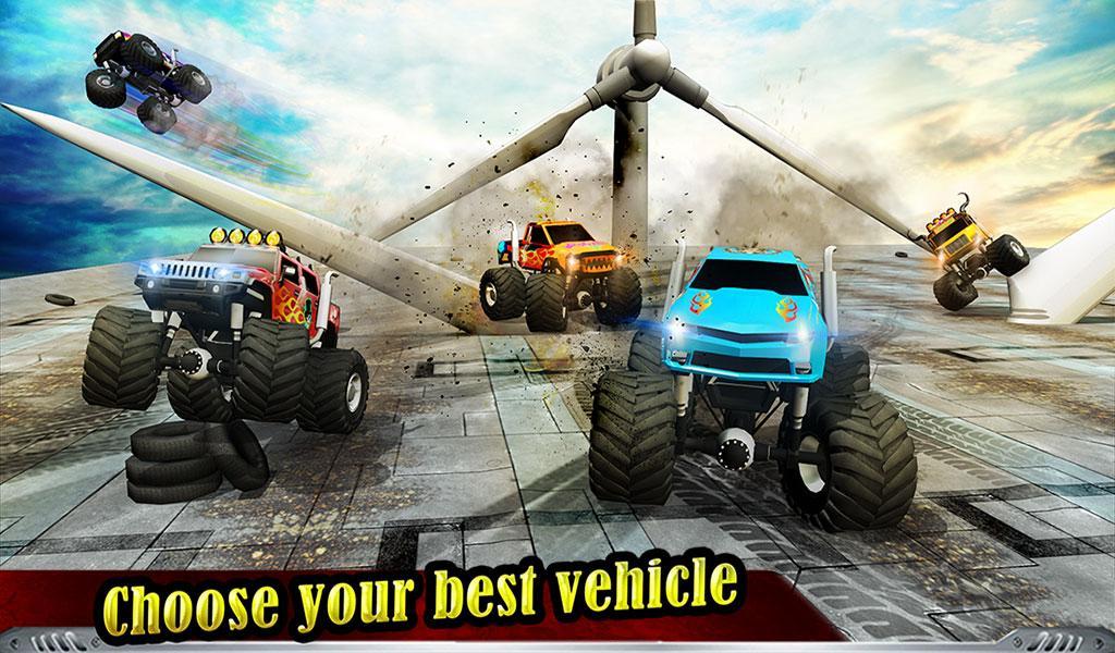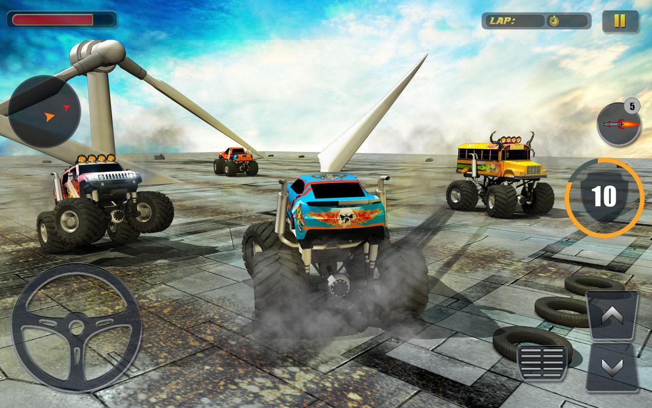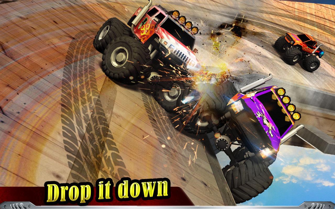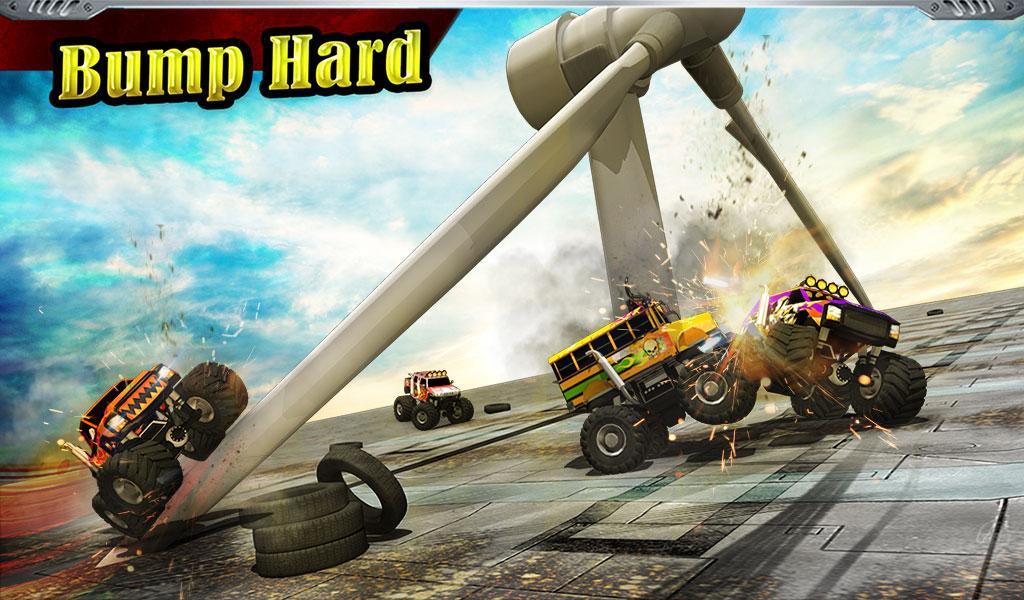 Monster Truck Derby 2016 – accept your part in extreme races on the arena in this game for Android. Drive your car forward and RAM cars of your rivals trying to throw them down. Arena this game to be over a huge precipice and if you fall off it, then the game will end. Drive your truck forward and try to destroy the machine opponents, pushing them down, rammed the huge propeller fans or shot with rockets. Race around the arena at great speed and try to do to avoid dangerous collisions, propellers and enemy fire. The game will delight players of different arenas, exciting tasks and multiple opponents.
