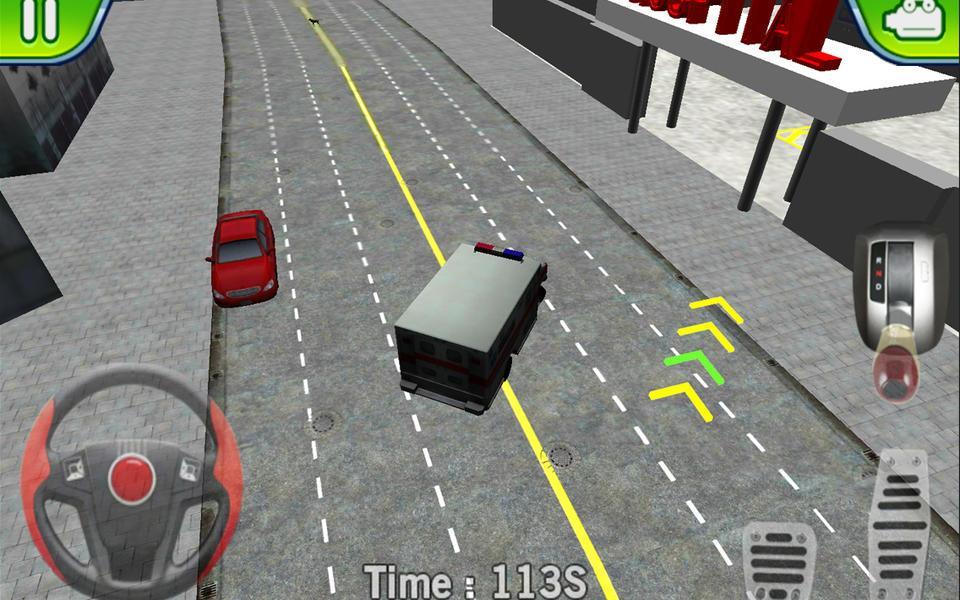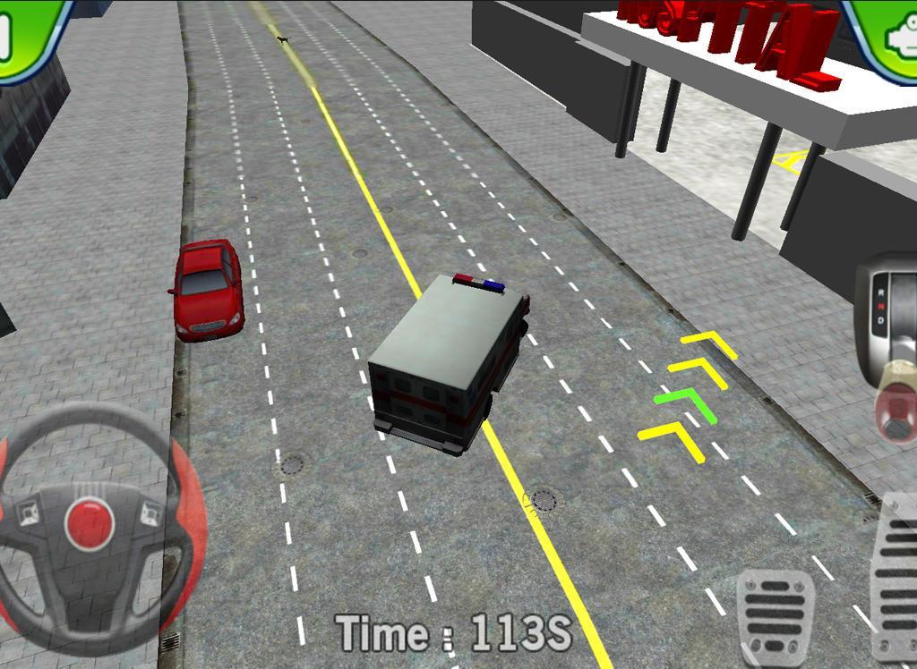 Ambulance Parking 3D Extended is a simulator for Android, where you take control of the ambulance and carry her through the busy streets of the city. In this realistic simulation you will control the car and rush forward in an emergency. Take the patients and go as quickly as possible on busy roads trying to deliver the patient as quickly as possible to the hospital. Watch for special signs that will show you the shortest way to the hospital. Expertly Park the ambulance near a huge hospital using a steering wheel and two pedals. Do not create emergency situations on the road, otherwise the game will start again. Test your skills great drive in this game and earn enough points.