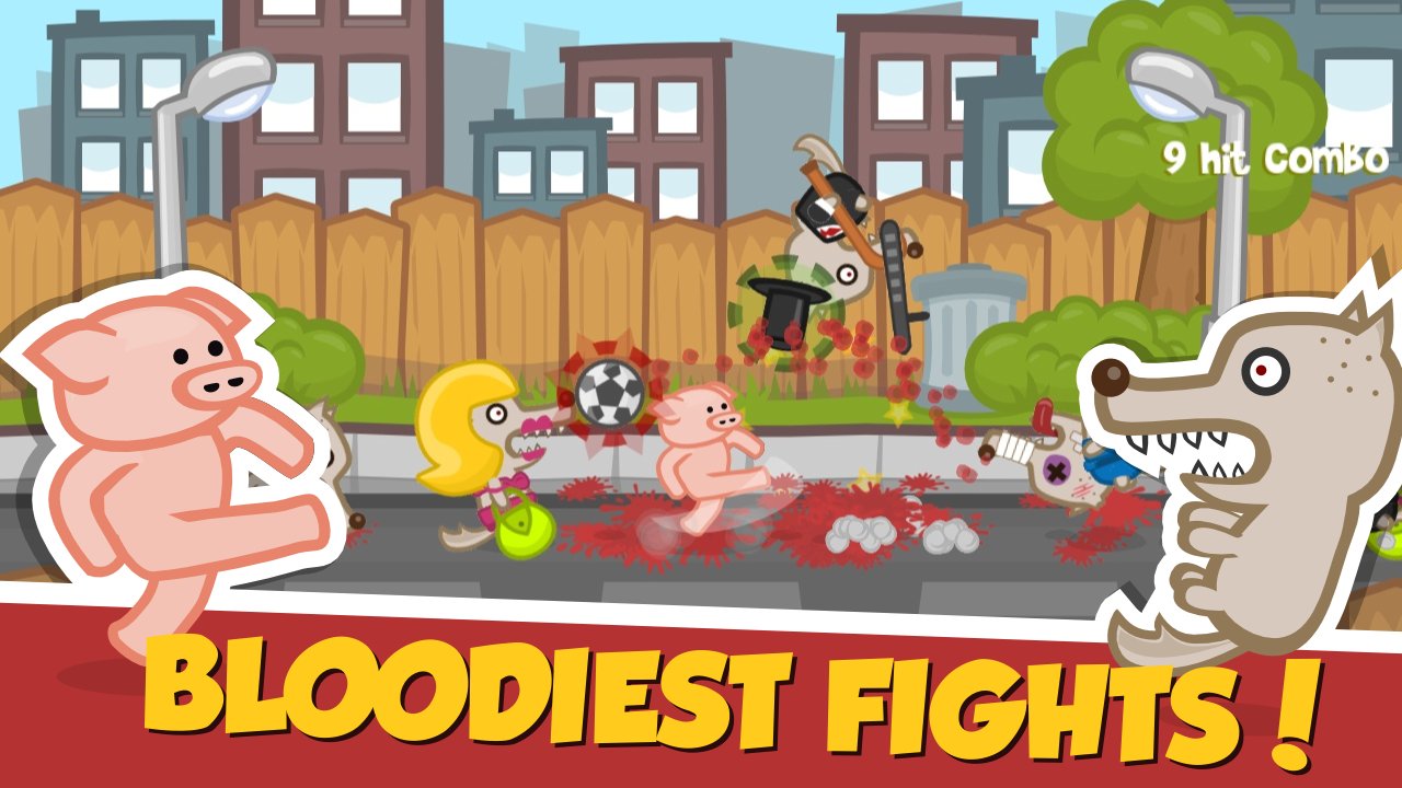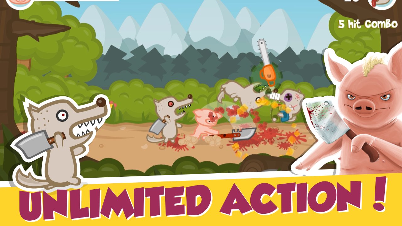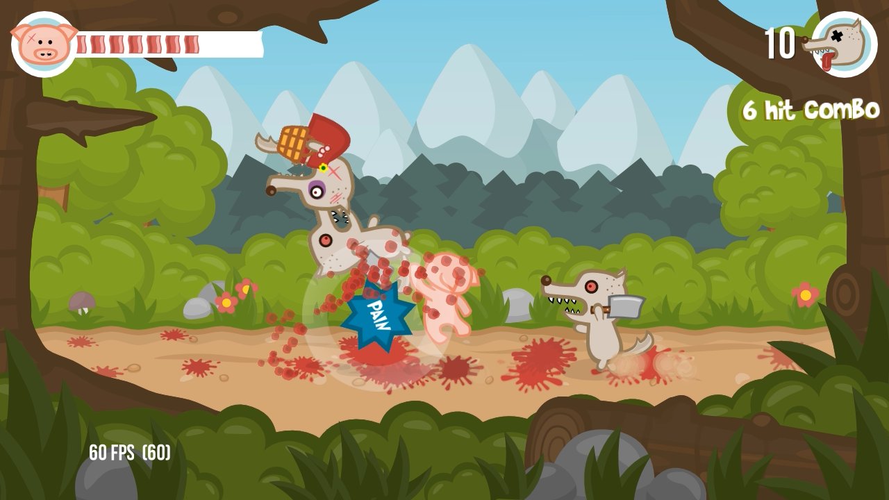 You have to help pigs combat to defeat hordes of wolves, only dream to feast on the tender pork, but they do it is not very easy, because the main character is not only tough, but well armed, and not hesitate to use as weapons and a cut-off of the enemies.