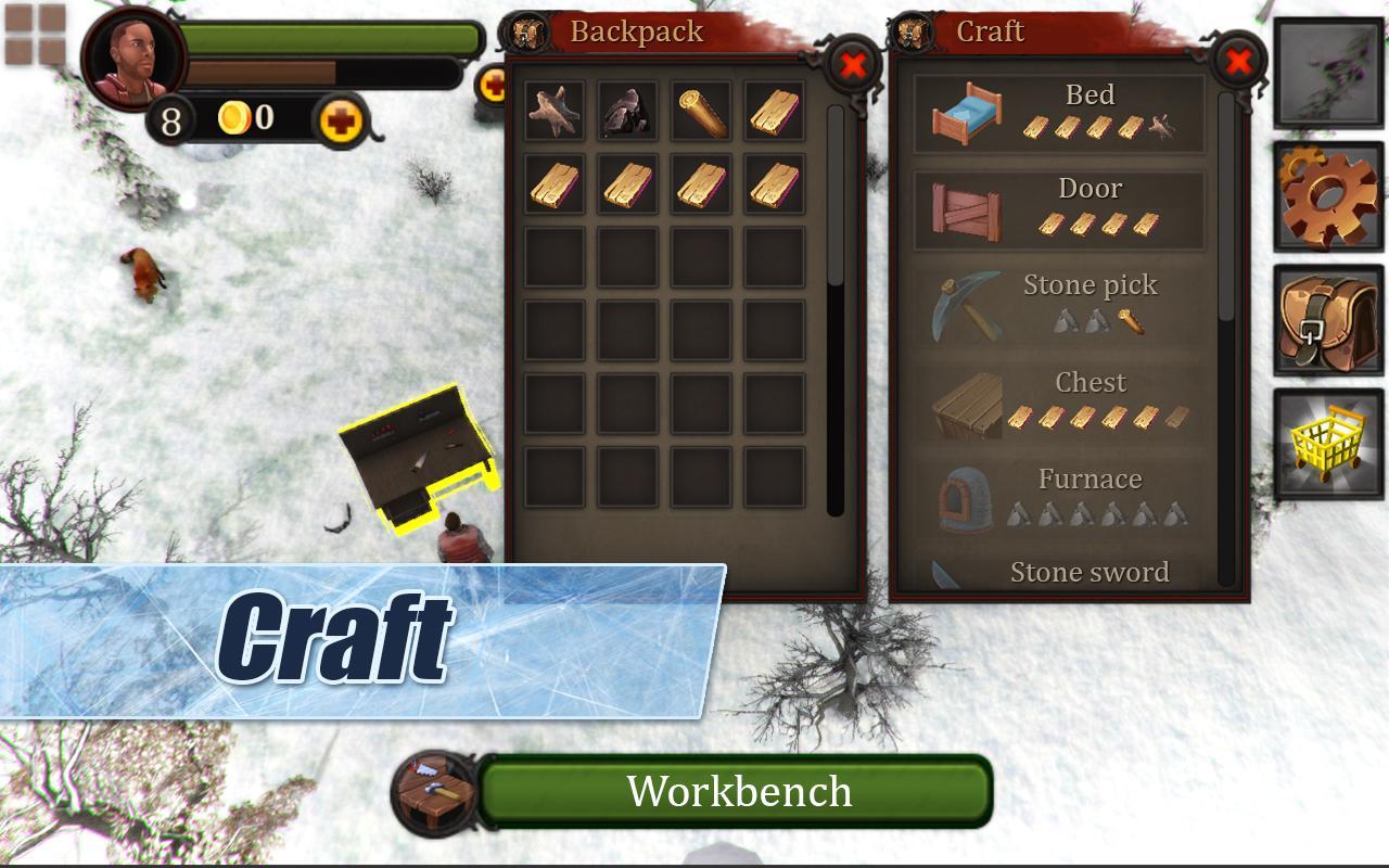 Winter Island CRAFTING GAME 3D simulator of a survival in extreme conditions on a desert island covered with snow. In this game your main task will be to explore a mysterious island and earn their livelihood and valuable resources such as timber, from which you can make a weapon and keep warm on cold winter evenings. Build a small house that will protect you from dangerous predators and hunt for animals and feed your character. Create improvised pickaxe, bow and hatchet and wary of encounters with hungry polar bears.