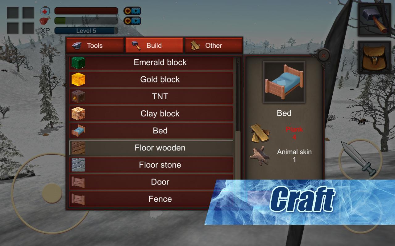 Winter Island Survival Game – a game on Android where you can survive alone on a small island covered with snow. In this game your main task is to collect valuable resources to produce various weapons and engage in battle with dangerous predators. Try to survive in this unfriendly island and build a shelter to protect themselves from enemies and cold. Create a improvised interior, armor, simple weapons and tools. Hunt for small animals and engage in deadly battle with the bear and the dragon. Explore the small island and search for their own food and water to survive.