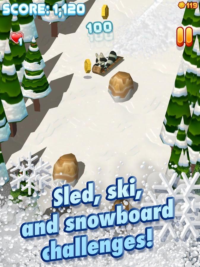 Game mechanics Toodle s Toboggan is somewhat different from the usual representatives of the genre, in addition to the various jumps and somersaults performed on a variety of winter equipment, skis, sledges and other things, the hero seems to be moving on you, not from you as usual.