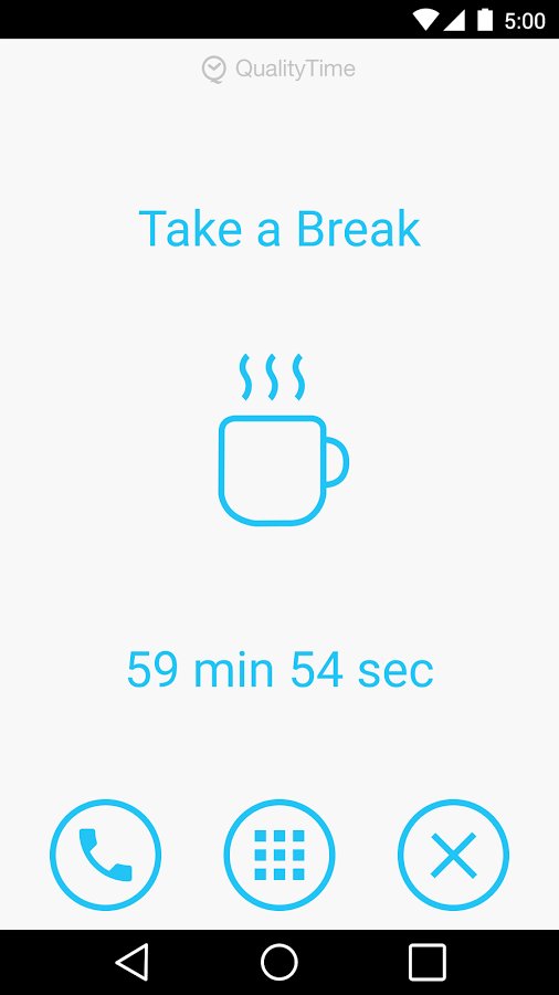 QualityTime - My Digital Diet - In today s world smartphones have become an integral part of the people, and now everyone stared at them and completely forgotten about real life. This app will help you to motivate yourself and not sit in the smartphone more than you need. What does it do? Everything is simple, it will show how much time you used a smartphone, while shared by all categories, and will show how much time you spent on a particular application. When you know the result, will be amazed and realize how much time has been wasted.