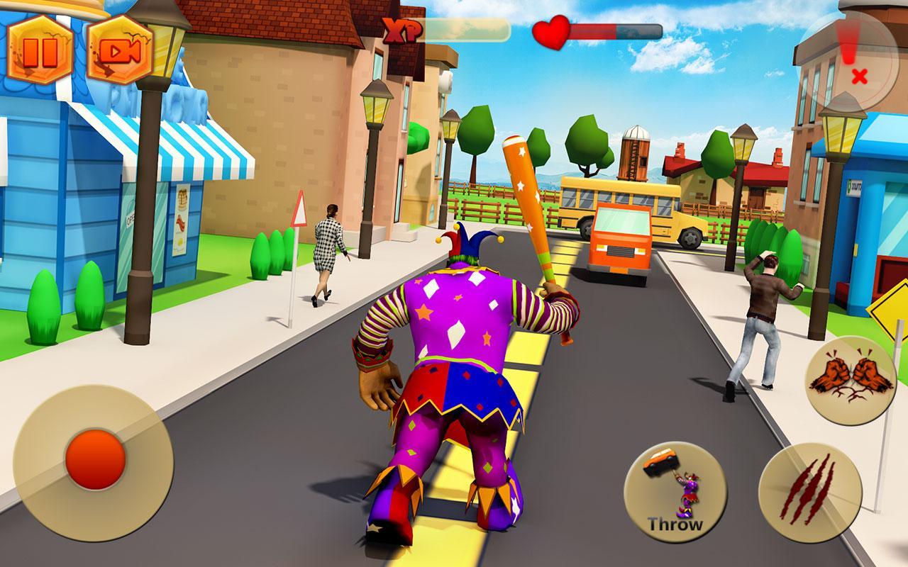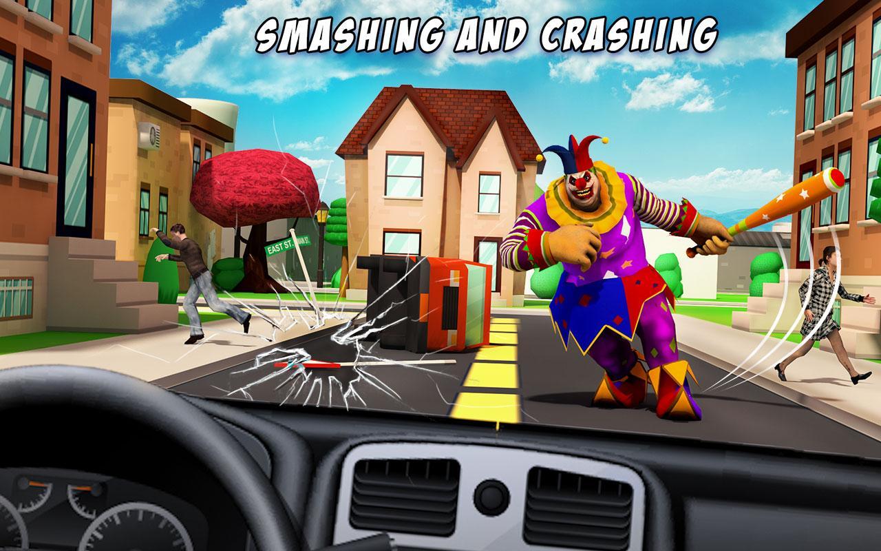 Creepy Clown Attack – control a huge clown that moves on the city streets and destroy everything around. In this game you will take control of a clown that moves around a huge metropolis and destroys everything in its path. Our clown has great strength and can with a single blow with a bat to turn the car. Immerse a huge metropolis in the chaos and perform numerous challenging tasks and missions. Attack on police cars and other opponents who want you to stop and destroy them. Destroy everything in your path and make bystanders run away screaming from you. Wear your clown in different suits.