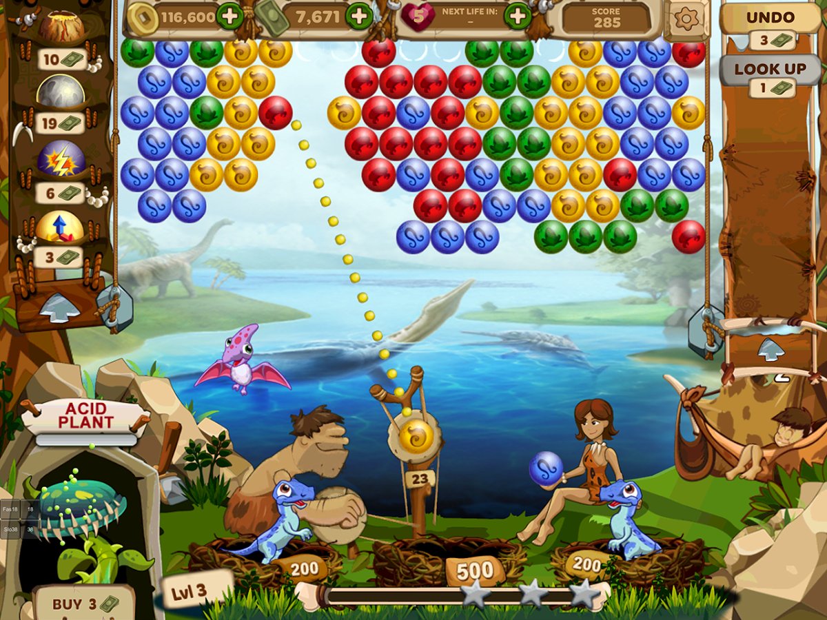 Bubble Age - a game made in the best traditions of the genre, so fans of Bubble Shooter you will not regret downloading it. In this case we should stay on the storyline, you have to go to the prehistoric era, together with its representatives and try to pass all levels, each of which is a Chapter in the history told by the game.