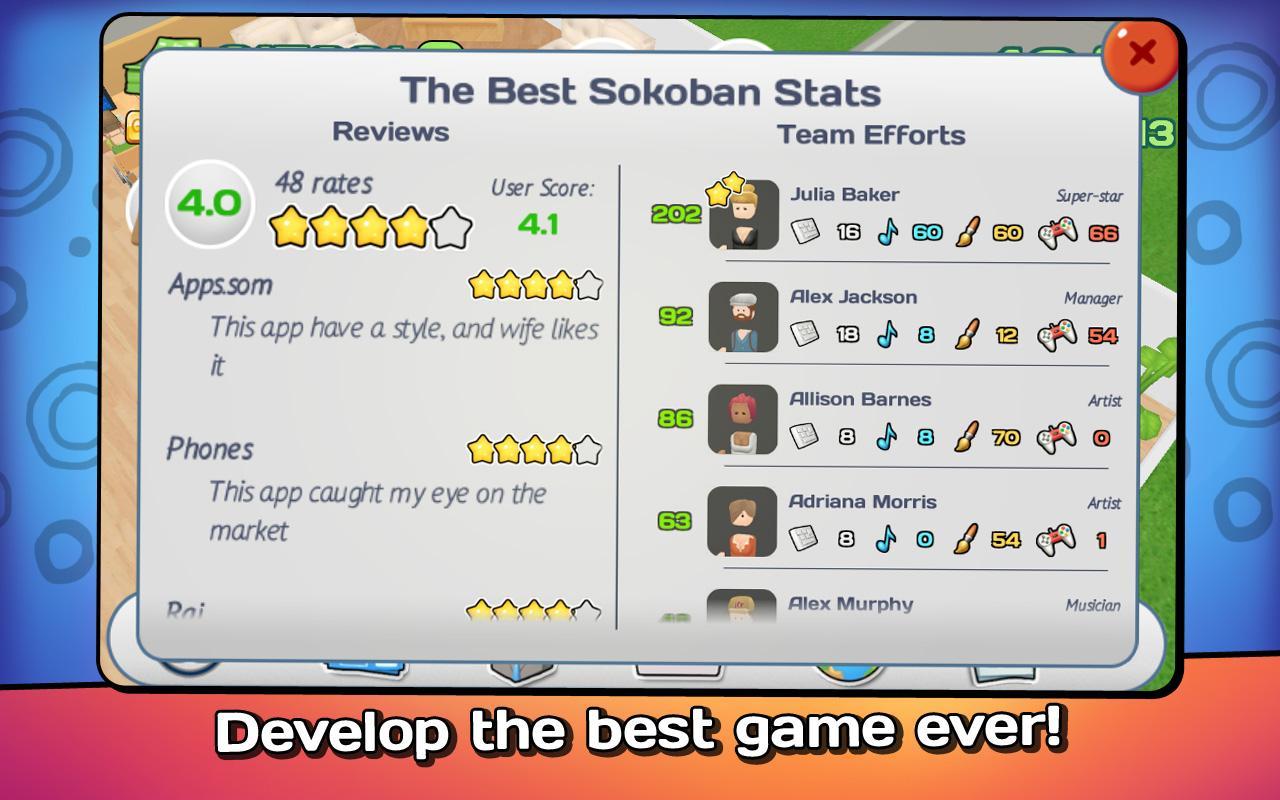 Office Story Premium game on Android where you can create the business of your dreams. In this game you and zero will create a company that will do mobile development and app creation. Study the market you want to go out and listen to the people and their employees. The market is constantly changing and the applications that go quickly out of date and you have to keep up with progress and to compete. Assemble your own team of motivated and educated employees and create for them a new equipped working places. Travel around the world and hire new employees. Compete with other players for the best spots on the leaderboard and keep in mind such parameters as the quality of the project and the income of the company.