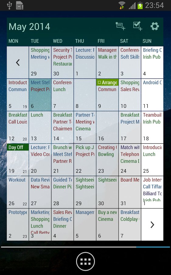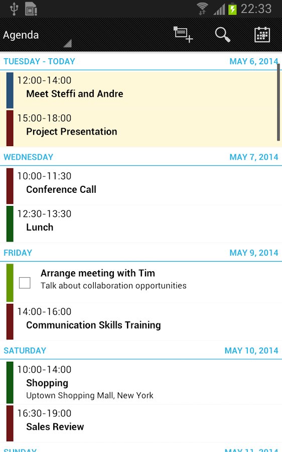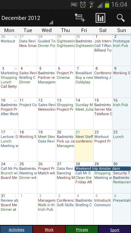 - monthly and weekly views and views of events and agenda
