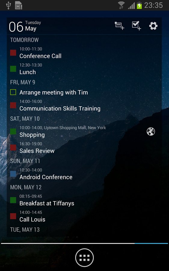 - widgets in different sizes for views by month, week, agenda and events