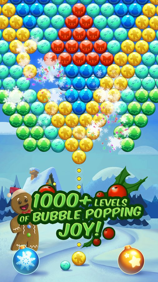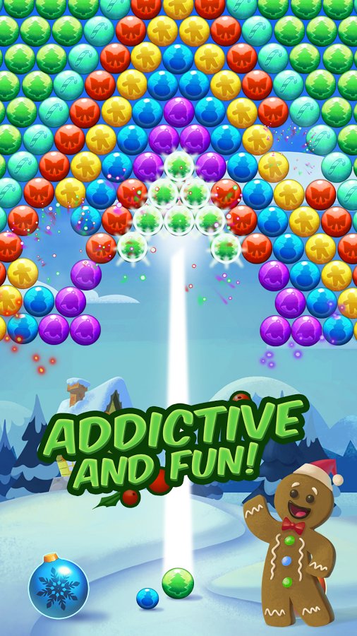 Christmas Cookie - Bubble Pop – help a cute gingerbread man to blow up as many colorful bubbles. In this game you immerse yourself in the wonderful and unique world of bubbles where you will be able to fully enjoy the winter festive atmosphere. Shoot colorful bubbles into a cluster of them up there and blow them up. Try to form groups of three or more bubbles of the same color or to start a chain reaction of explosions. Try to get three stars for each level and beat all existing records in this game. Do all the many tasks and go through more than 1000 levels, receiving fabulous gifts.