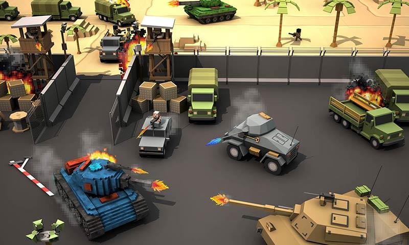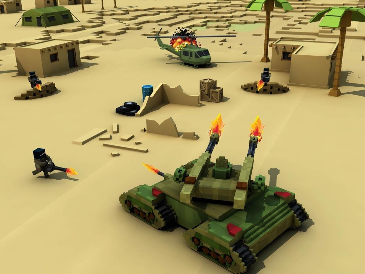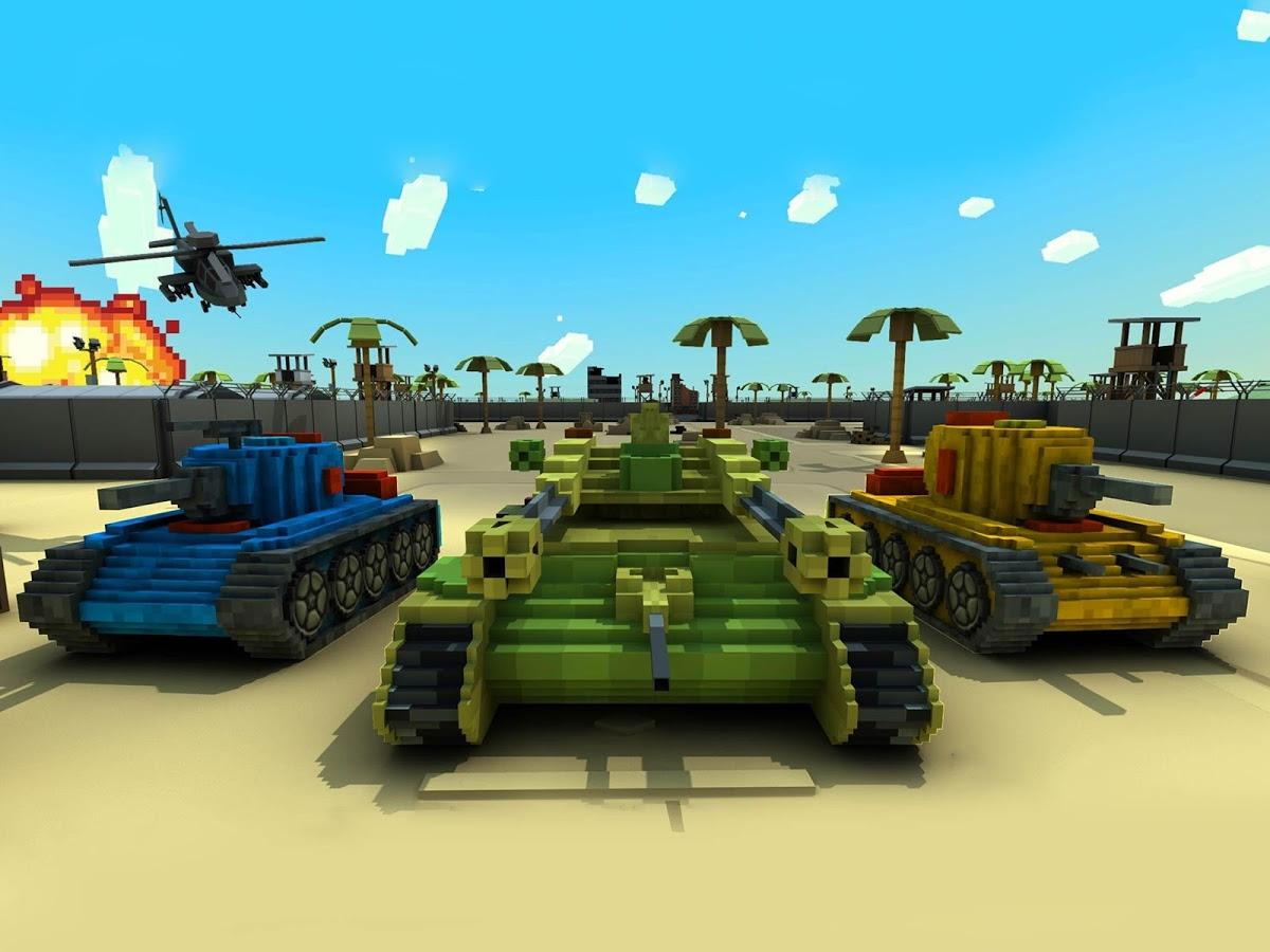 Blocky Battlefield Extreme – accept your part in the tank battles in this game for Android. In the game you take control of your tank and hold it in numerous locations of the game, destroying enemy tanks. Protect your city from the invading enemy tanks using the powerful weapons and machine guns. Undermines armored vehicles of the enemy, blow up helicopters and tanks and don t let the enemies break through your defense. Use a variety of shelters and buildings to protect against the impact of enemy fire and invoke the aid of allies. Buy new tanks and improve them in your hangar.
