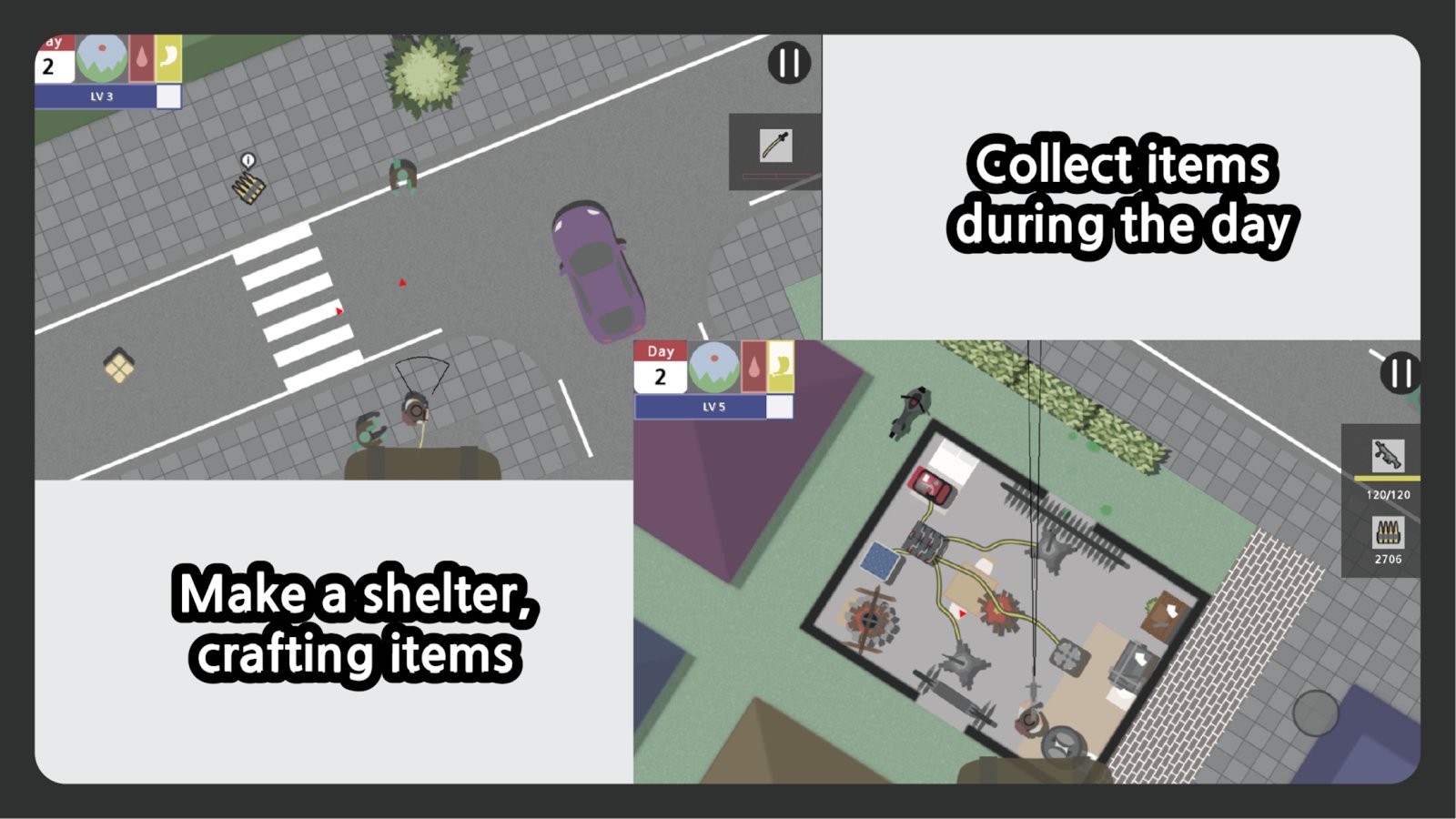 Dead Town - Zombie survival – shooter for Android with the top view where you will survive in a post-apocalyptic world. In this game, after the zombie Apocalypse you are left all alone, and your task will be to find a place to hide and to survive at any cost. Move through the dark streets of the city and different areas and look for weapons and ammunition that will help you to destroy zombies. Look around and don t let zombies eat your brains. Use different weapons such as: axe, bow, shotgun, assault rifle and other weapons. Build yourself a shelter improvised and collect valuable resources.