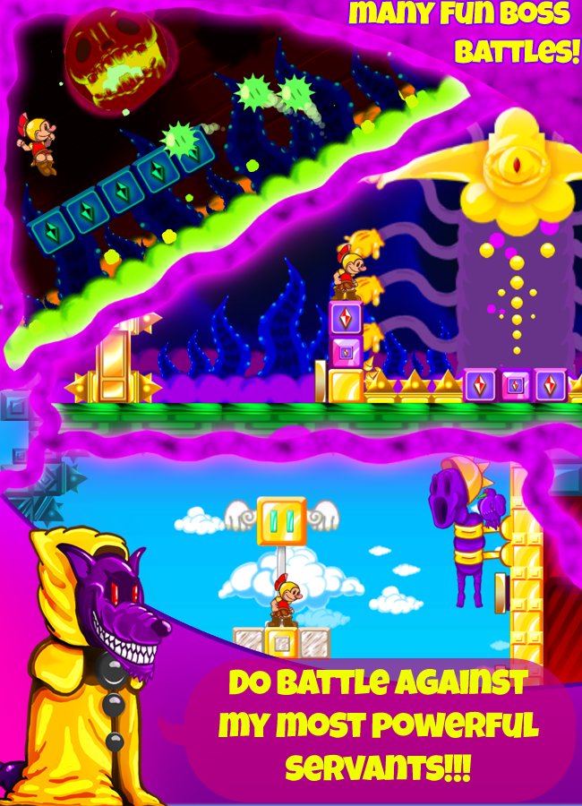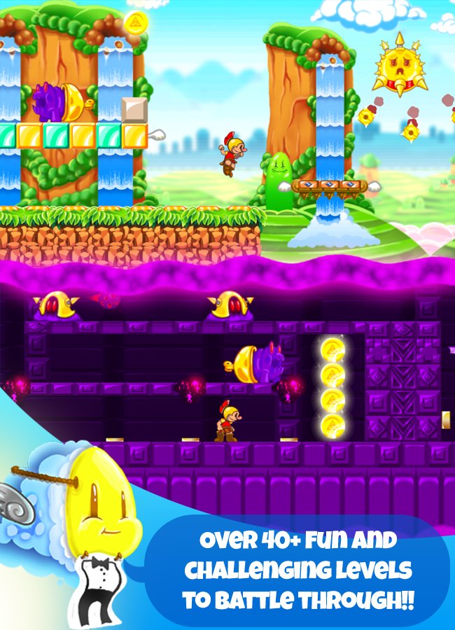 You also have to help the brave war to the destruction of evil using not only his own fighting skills, but also a variety of magical things. The game is divided into more than 40 levels, each of which is the next Chapter in the storyline of the game. Overall Super Spartan Fury World is a great platformer in the classic style, with simple controls and colorful graphics.