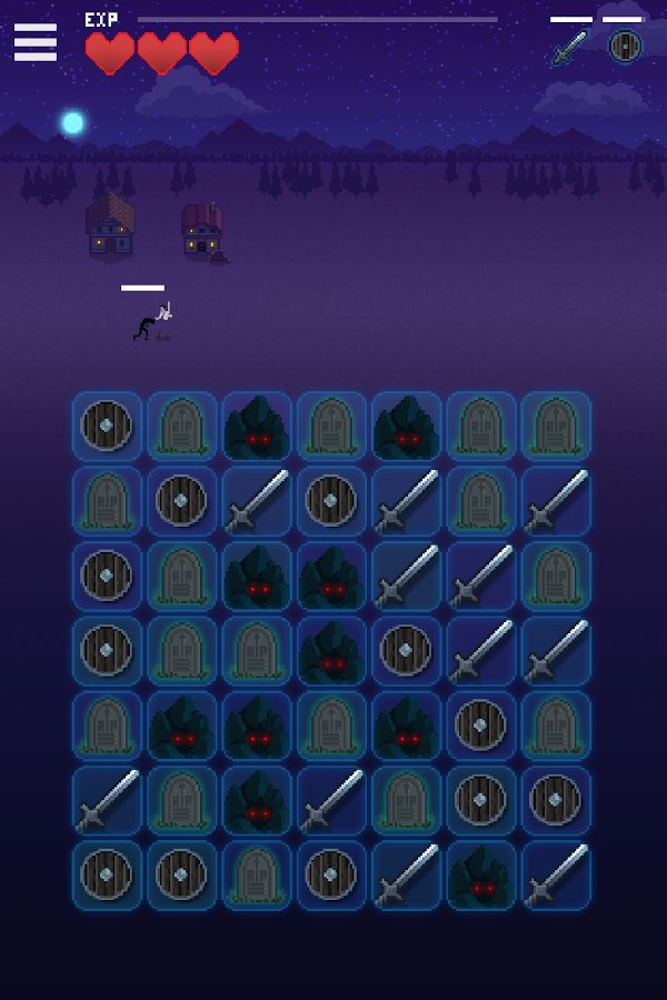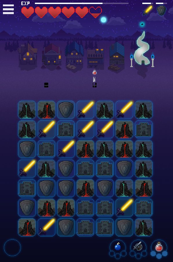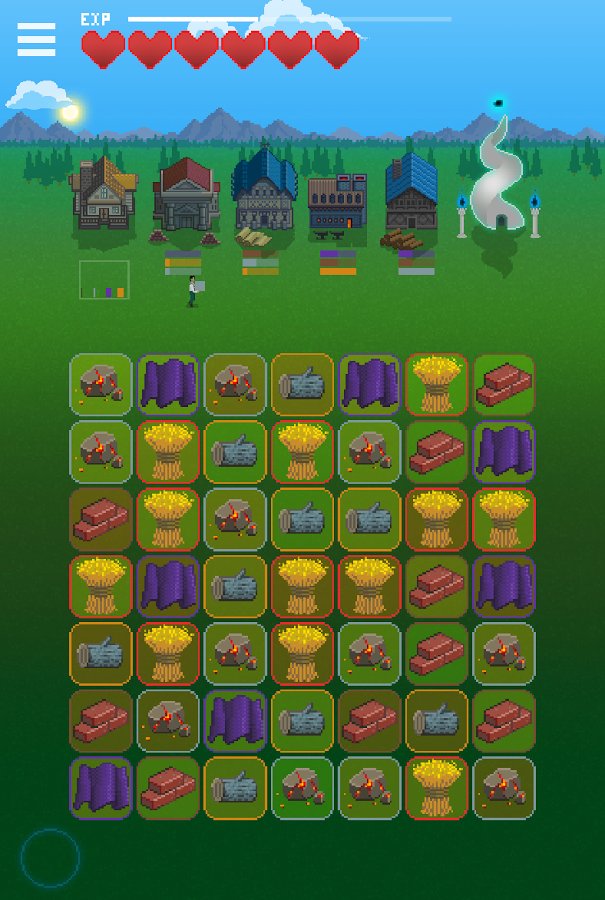 And so, the plot of the game is simple, you were alone in a fantasy world and now you need to try to survive, and for this to settle in an unfamiliar place. So by combining elements in a row of three or more, you will generate the necessary resources, tools, building materials, and will use to their advantage. When the night comes, everything changes and the tiles turn into monsters and weapons, using the same scheme you have to defend your possessions and to protect their lives.