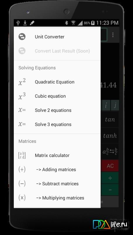 Prof Calculator - a Great scientific calculator that incorporates a variety of functions, and created to solve complex problems and formulas. This application will cope with almost any task, but its primary function is a calculator of matrices, and solve complex equations. It is not very suited for that would use it as a normal calculator, however if you are a student and are associated with these questions, then you it will definitely be useful.