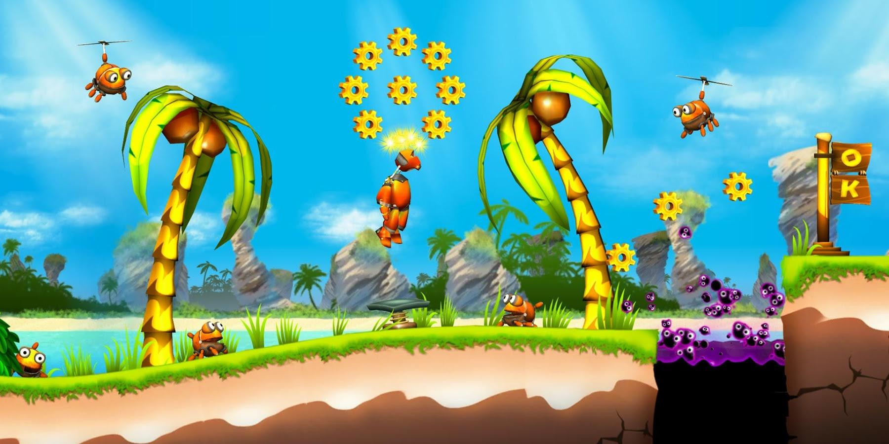 the game is divided into more than 70 levels, passing that you will not only jump and run, collecting gear, but also to swim, climb walls, solve puzzles, and most of the locations studied with a focus on a variety of game content.