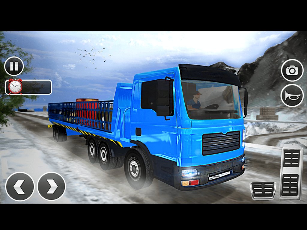 Extreme Uphill Truck Driver – simulator for Android, where you take control of a huge truck and will ride through the dangerous tracks. Get behind the wheel of a truck and transport cargo to the highlands, showing all your skills excellent drive. You have to carry different loads such as barrels of fuel, crates and logs. Try to get to the destination in minimum time and at the same time not to lose the cargo along the way. Drive your truck forward on the dangerous mountain road day and night and make your way through the snow and fog. Perform all assigned missions and earn great rewards in the form of new trucks.