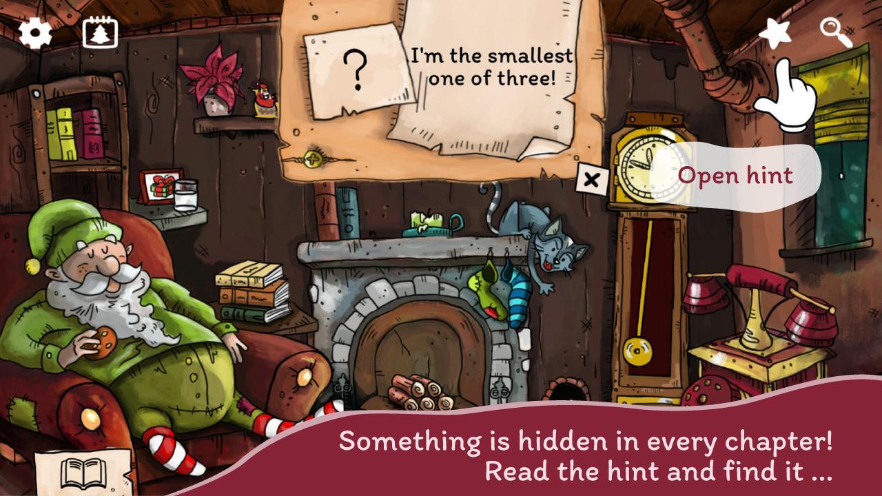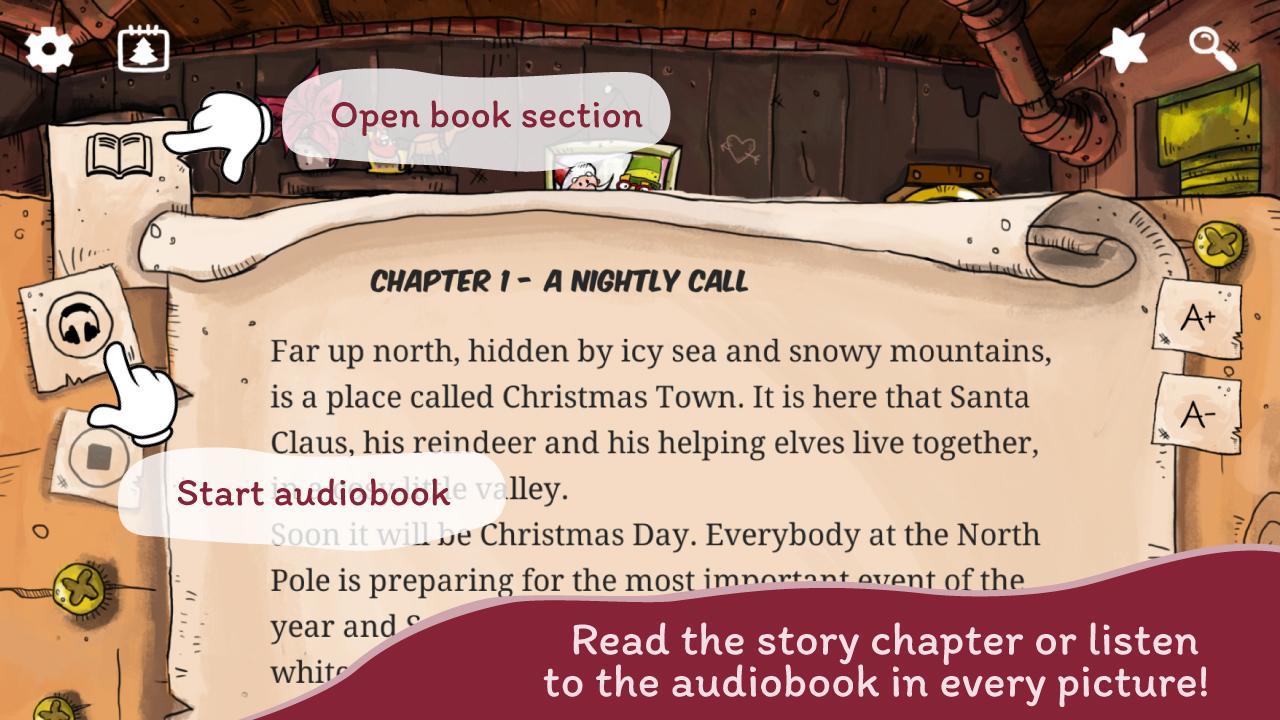 Trouble in Christmas Town - an interactive book game story which will take us into the magical Christmas time and tells of the adventures of Santa Claus and his friends. The entire game is divided into chapters, each of which is illustrated in the manual, all the backgrounds, locations and texts are created in high quality and will give you quite a few pleasant minutes. For those who do not like to read in the game provides the function audiobooks.