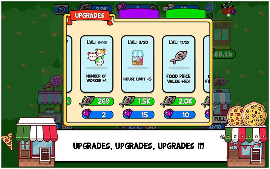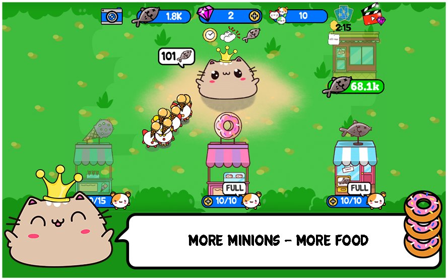 Princess Nom Nom Cat – clicker on Android, where you will feed the eternally hungry Princess cats. Our main character is in the middle of the screen and your task will be using his servants to feed her. Tap the screen of your phone or tablet as often as possible and build a variety of eateries, stalls with hot dogs and other fast food and feed your Princess. Simultaneously manage numerous cats and produce food in large quantities. Constantly monitor the level of hunger of Princess and don t forget to feed her. Do everything you can to your Princess cats became fatter and apply for this excellent the speed of your fingers. Game players will appreciate the simple controls, a variety of treats and numerous improvements.