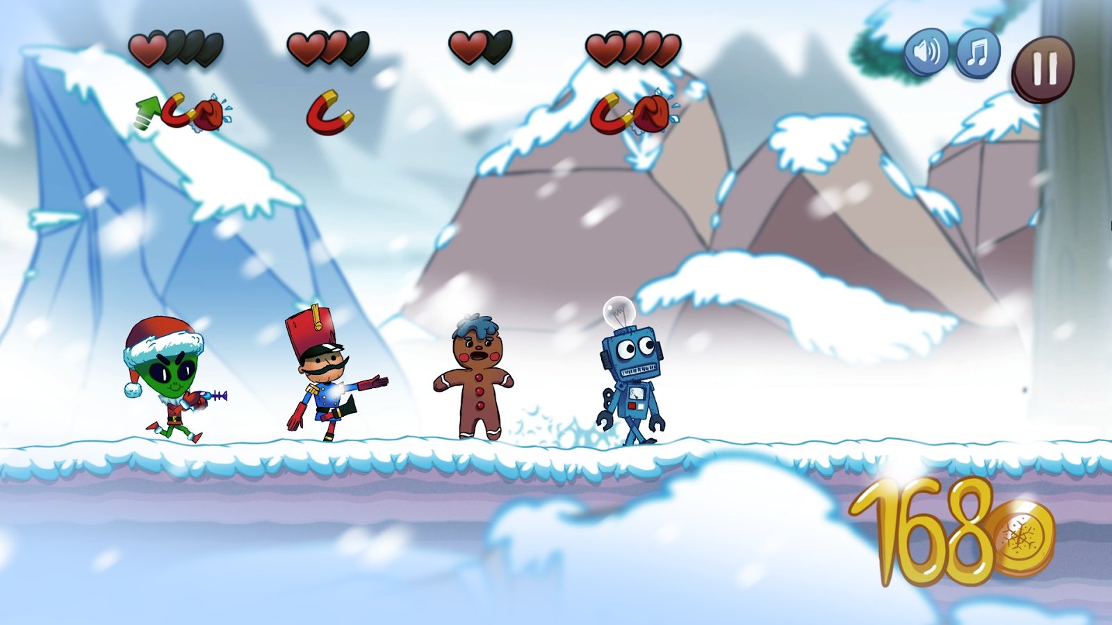 The Christmas Journey GOLD - Christmas arcade game represents something average between the horizontal runner and a platformer, the developers found a rather unusual use of the game mechanics. For starters, you begin the game as one of the available characters and everything will be very simple, run at horizontal locations, overcoming obstacles and collecting prizes. However, the consequence to you of the company will be added to all new characters and then mechanics is greatly complicated, because you have to manage the whole chain.