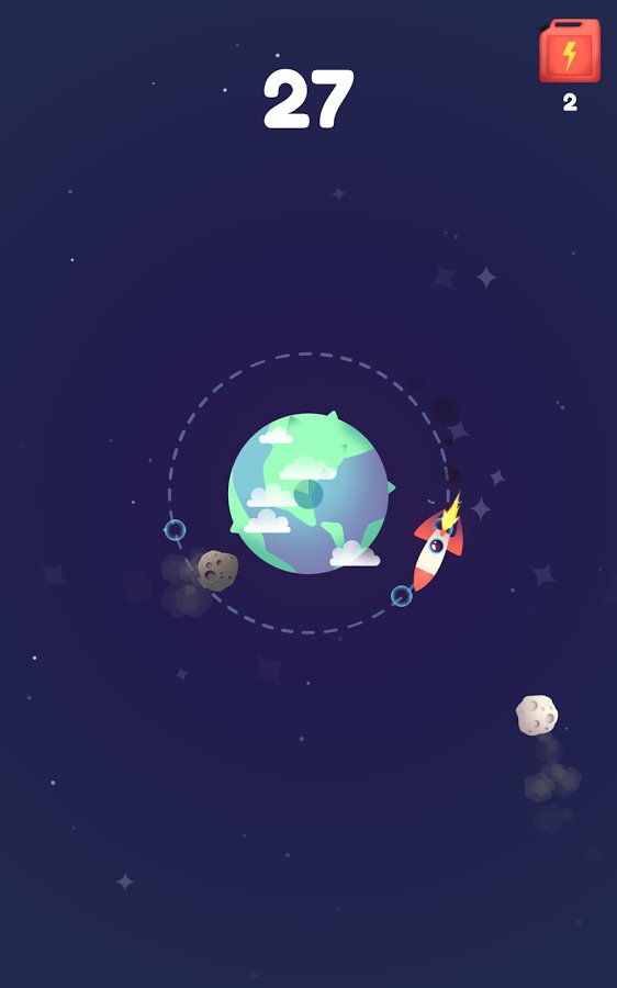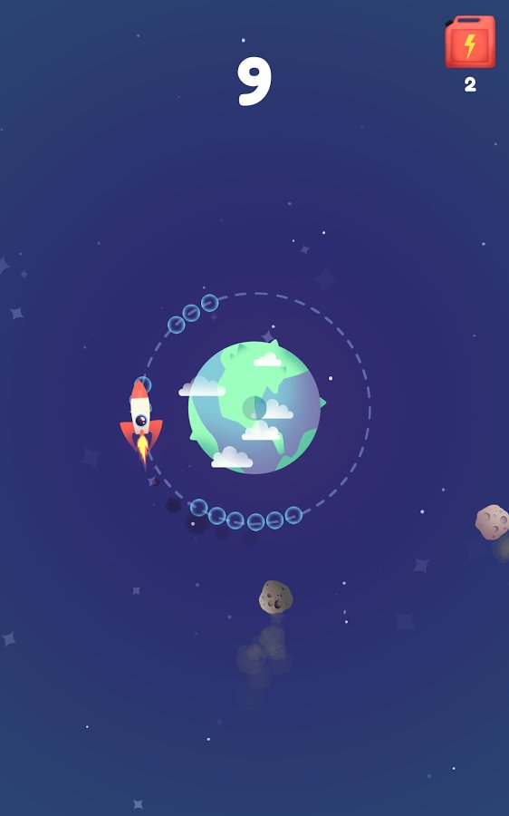 Cosmos Combos – the game on Android, where you will defend your planet from asteroids, meteorites and satellites. In this game you will take control of a rocket that rotates around the axis of the planet and thereby creates a protective field. Touch the screen of your phone as often as possible to quickly create a protective field to protect the planet from destruction. Be extremely careful and proceed as quickly as possible, to prevent falling objects can harm the planet. All barriers block the way to the Ground and set your highscore in this game. Use various bonuses and power-UPS in an emergency and climb higher in the leaderboard.