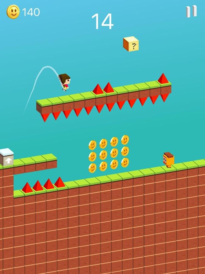 Jumpy – help the main character jumping and move in this game. In the way of your hero will find many obstacles and barriers in the form of spikes and traps. Tap the screen of your phone or tablet at the right moment and jumps, avoiding all the obstacles and jumping on the heads of enemies. Get ready for some hilarious adventures of the protagonist, where you will be able to train excellent response and set records in this game. Go as far as possible in the game and avoid falling of the hero, otherwise the game for you the end and have to start all over again. Along the way, collect various crystals and climb higher in the leaderboard.