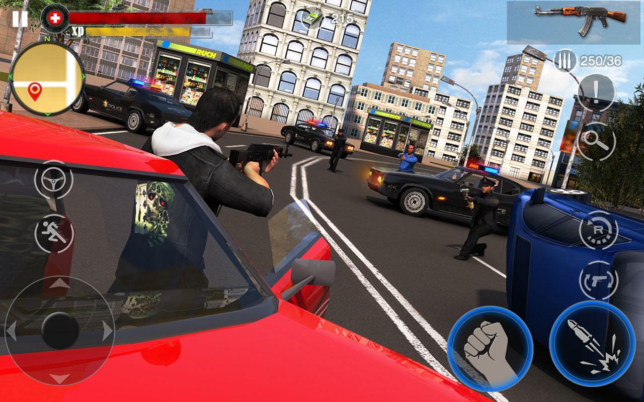 Gangster Revenge: Final Battle – chase through the streets of a huge metropolis on a motorcycle or car, driving a gangster. In this game you will assume the role of a bandit who escaped from prison and decided to take revenge on all enemies for treachery. Navigate the city streets and Rob stores and banks, while being chased by police vehicles. Steal sport bikes and cars and at great speed driving through the streets, ramming the oncoming vehicles and obstacles on the way. Fight the numerous bandits and enemies and use different fighting techniques and also don t forget on cold and firearms.