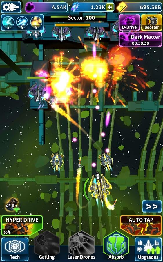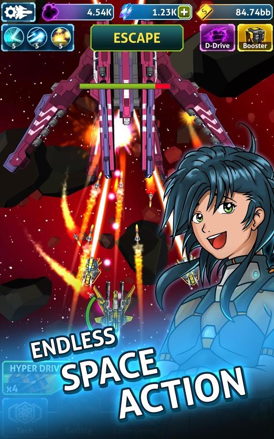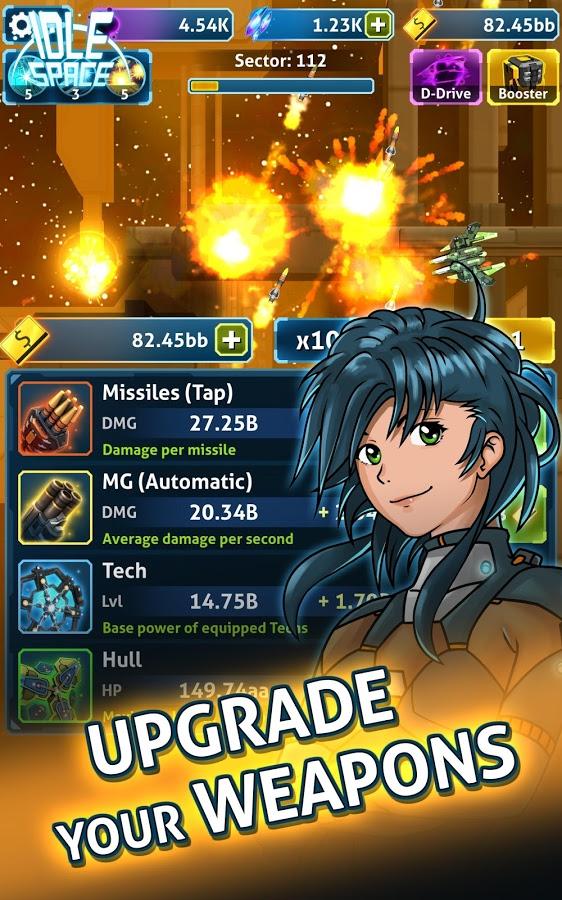Idle Space - Endless Clicker - classic arcade clicker with endless gameplay, made in the style of the space and not devoid of action component. So, at your disposal space battle cruiser, by means of which you need to destroy hordes of enemies, for which you will receive a bonus, and they, in turn, improve the ship and destroy even more alien scum.