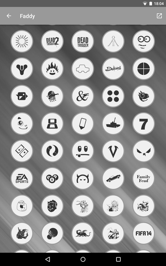 Faddy - Icon Pack - icon set containing more than 3850 pieces, a massive collection of Wallpapers and simply endless variants of their combinations. This set is suitable for all lovers of minimalist design and monochromatic soothing shades.