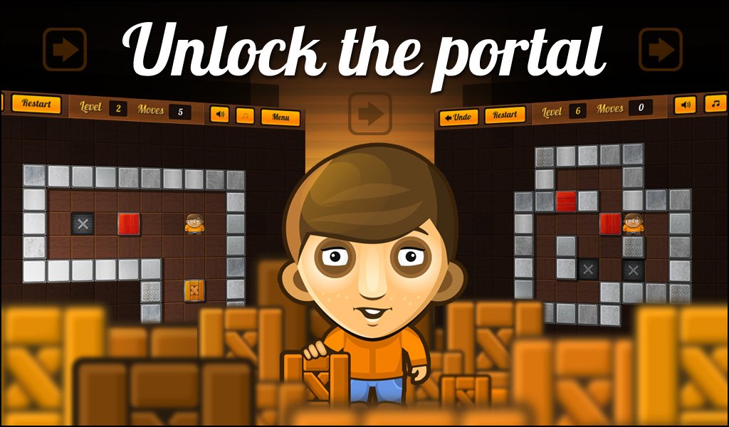 Sokoboom - a puzzle game based gameplay which has lain Sokoban, but there are some differences. So, if you have over 30 levels to control a little boy trapped, but in order to go further you need to push the block to the button that will turn on the portal.