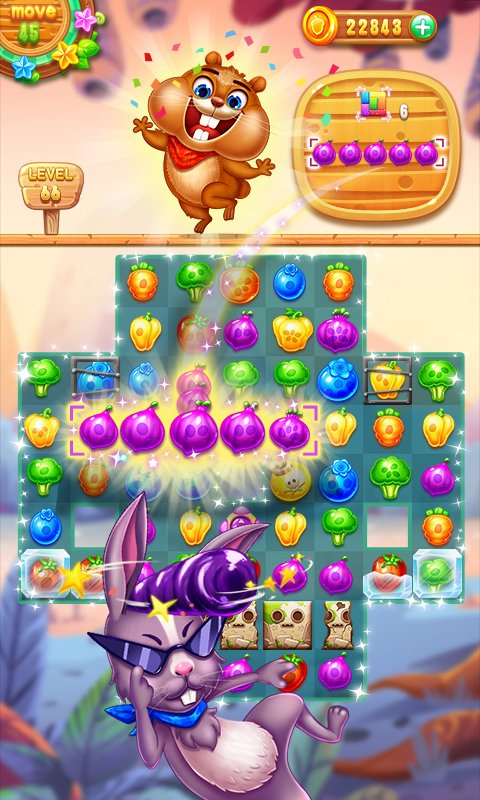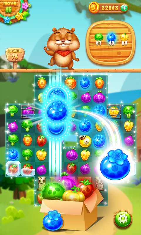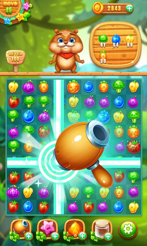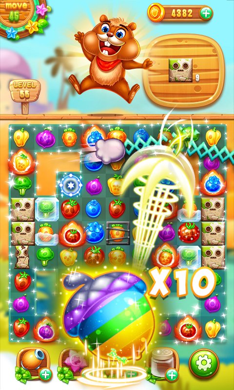 Farm Harvest 2 is a fun game for Android where you will help a squirrel to collect as many crops. Our hardworking squirrel preparing stocks for the winter, but it interferes with a cunning rabbit, who wants to get vegetables and fruits. Rows of fruits and vegetables and try to do their job as quickly as possible to leave no chance for the rabbit. Swap colorful objects and match three or more fruit and enlist the help of various power UPS and bonuses to quickly pass the levels. Make the most of the long rows and destroy them, receiving as a reward a lot of points.